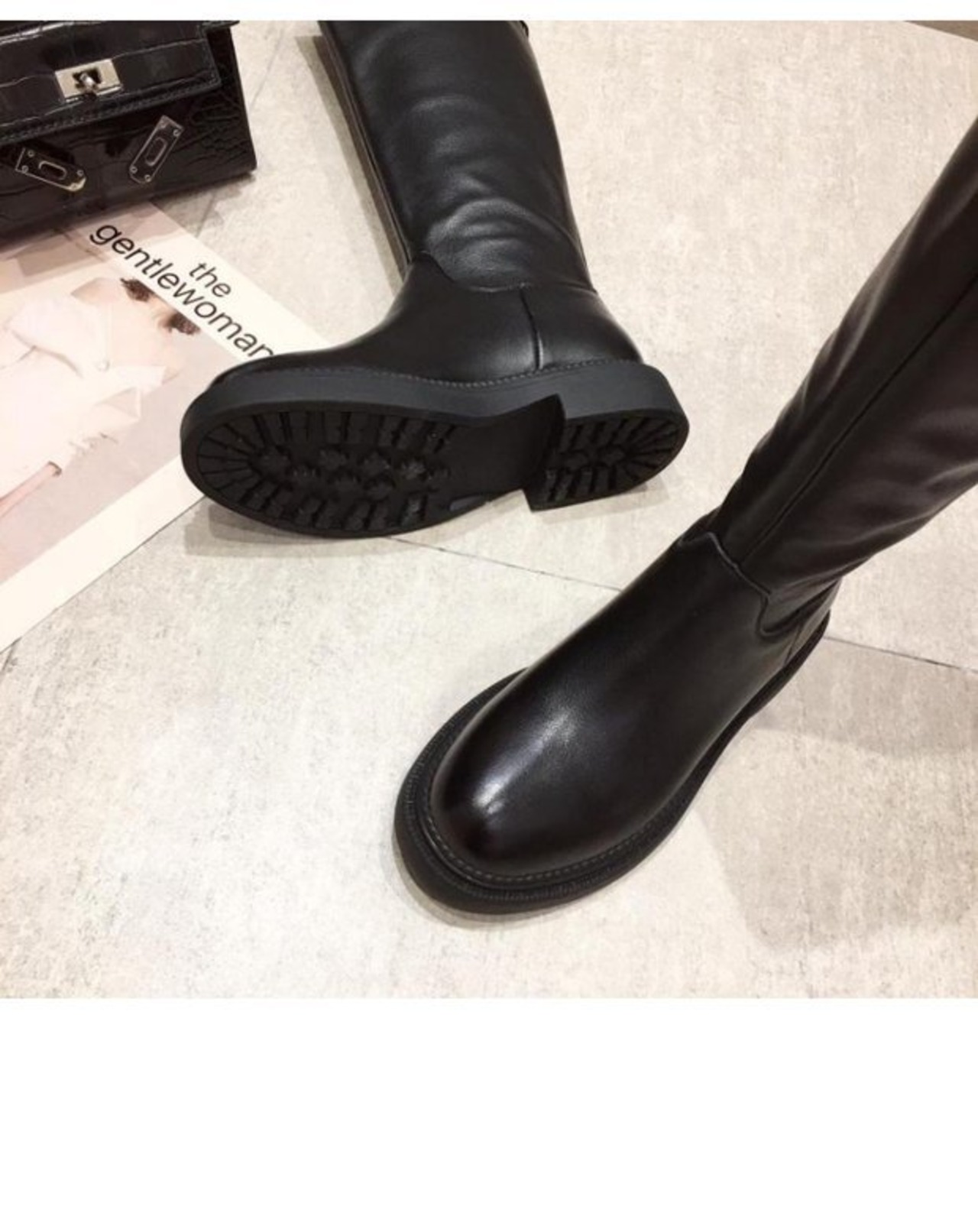 小さいけれど膝のブーツ、厚底の牛革、ハンサムなハイブーツ、バックジッパー、厚いヒール、薄くて薄い長いオートバイのブーツ ロング 靴 シューズ インポートシューズ mi6217355536771