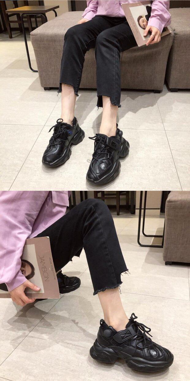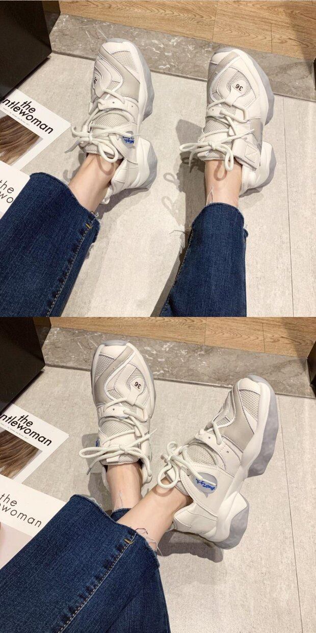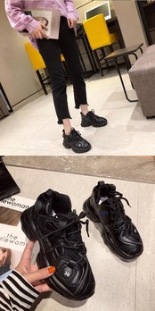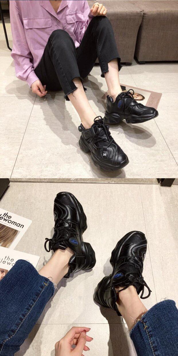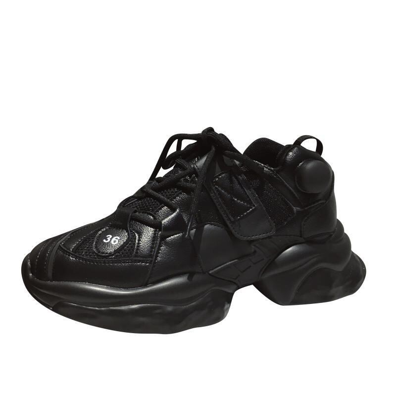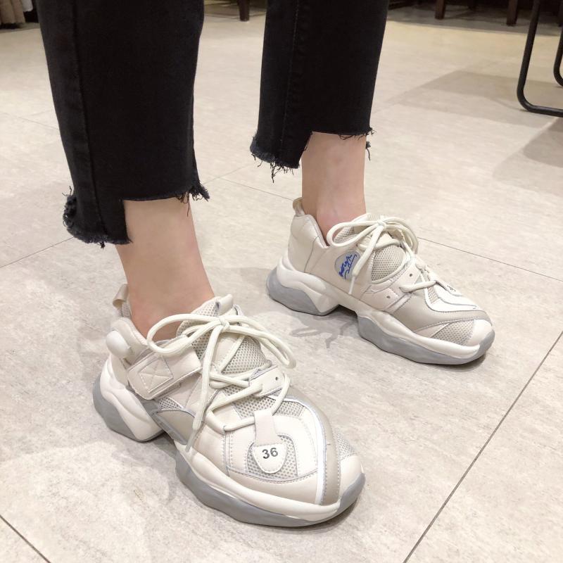 2020年の新バージョンのレザーメッシュカジュアルスニーカーの女性は、黒と白の古い靴の小さな靴ひもで厚底の足にすべて一致します シューズ ホワイト ブラック レース インポートシューズ mi6210717813050