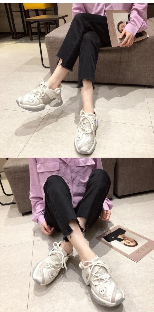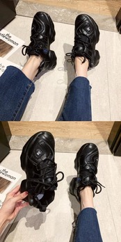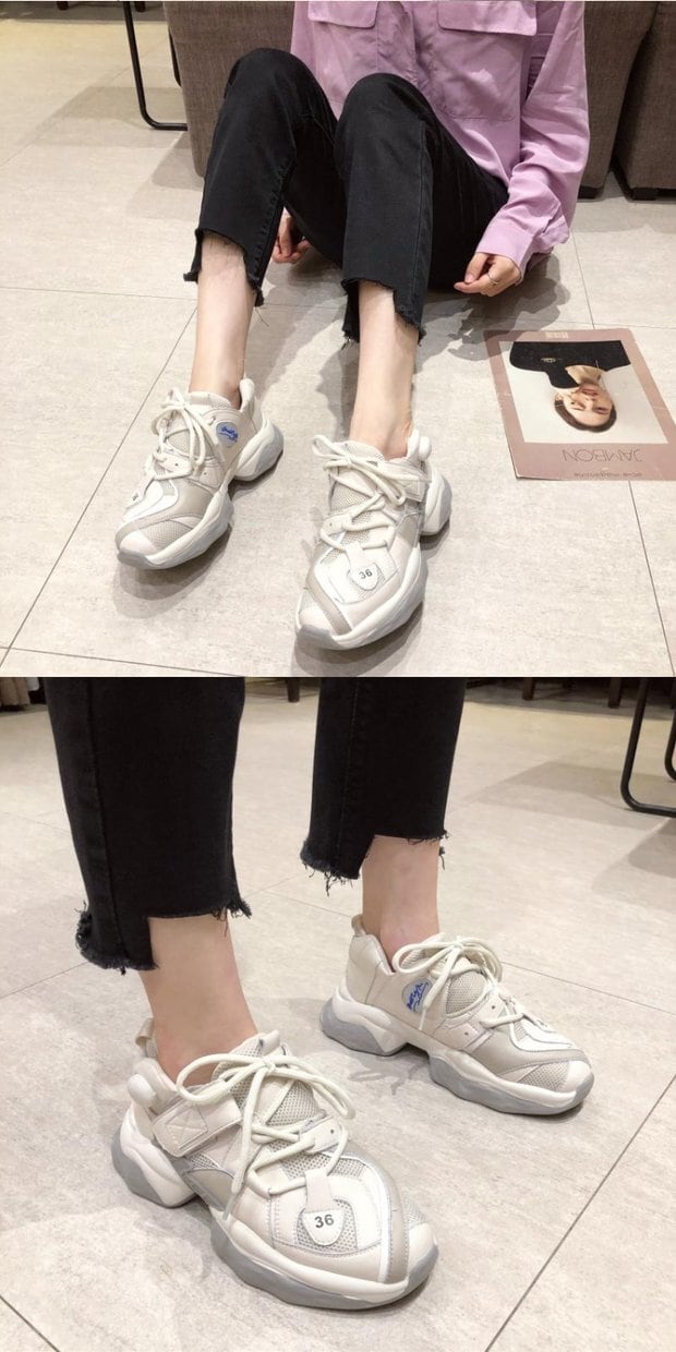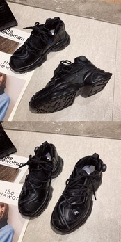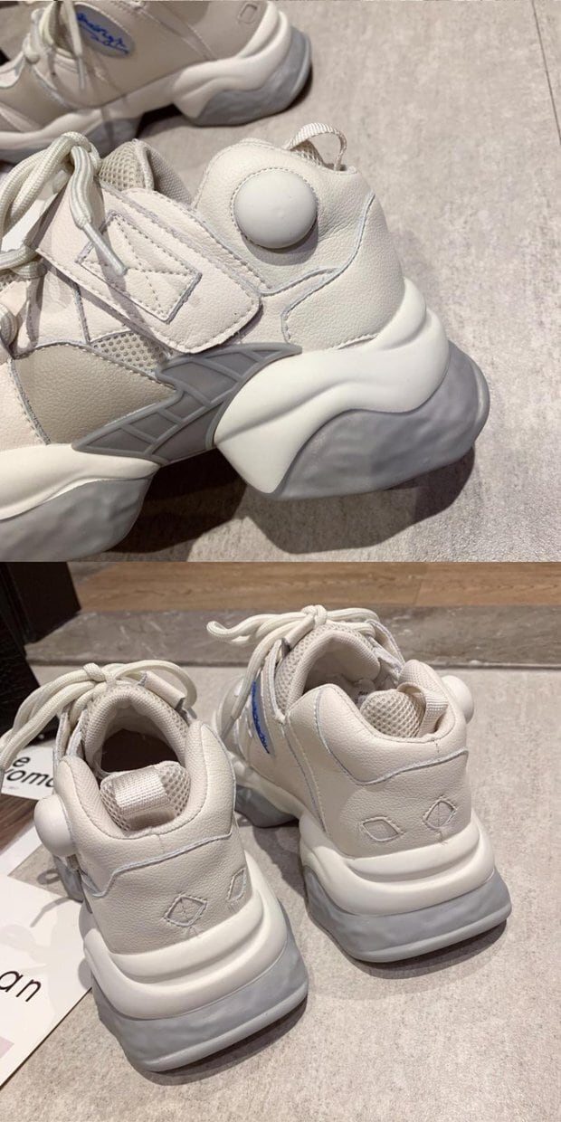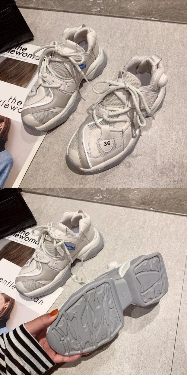 2020年の新バージョンのレザーメッシュカジュアルスニーカーの女性は、黒と白の古い靴の小さな靴ひもで厚底の足にすべて一致します シューズ ホワイト ブラック レース インポートシューズ mi6210717813050