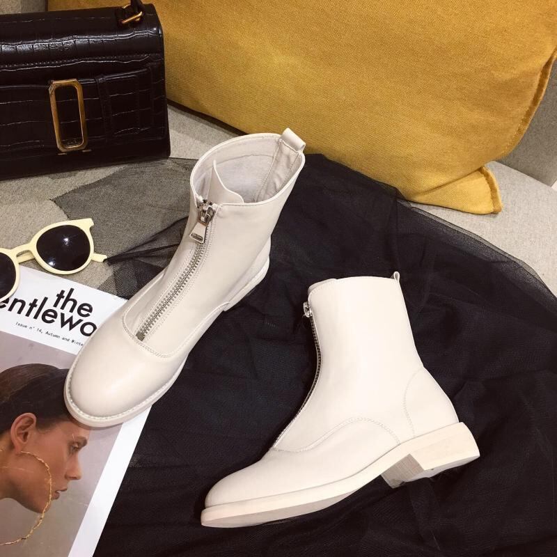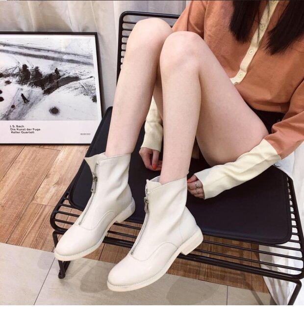 フロントジッパーレザーナイトブーツレディース2020年秋ニューラウンドトゥフラットアンクルブーツワイルドミディアムチューブシンシンシングルブーツレディース 靴 シューズ オータム 秋物 ラウンドトー インポートシューズ mi6225855092775