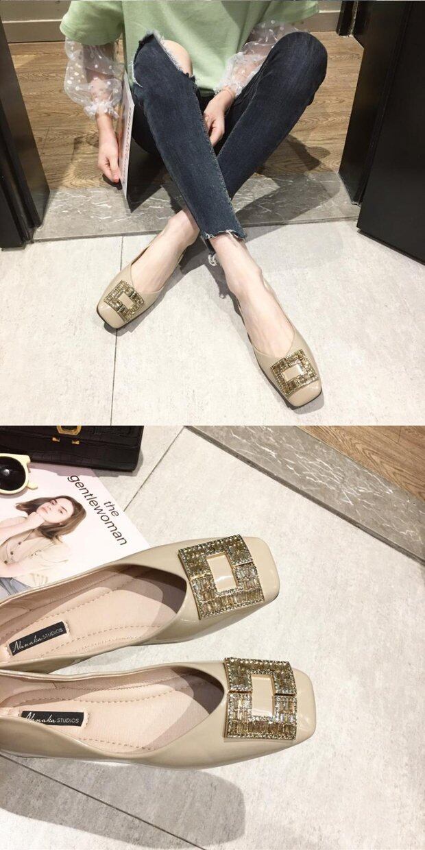 靴女性の2020年秋新バージョンのスクエアトゥフラットシングルシューズ女性の妖精風水ラインストーンソフトソール優しいスクープシューズ オータム 秋物 スクウェア インポートシューズ mi6216263434724