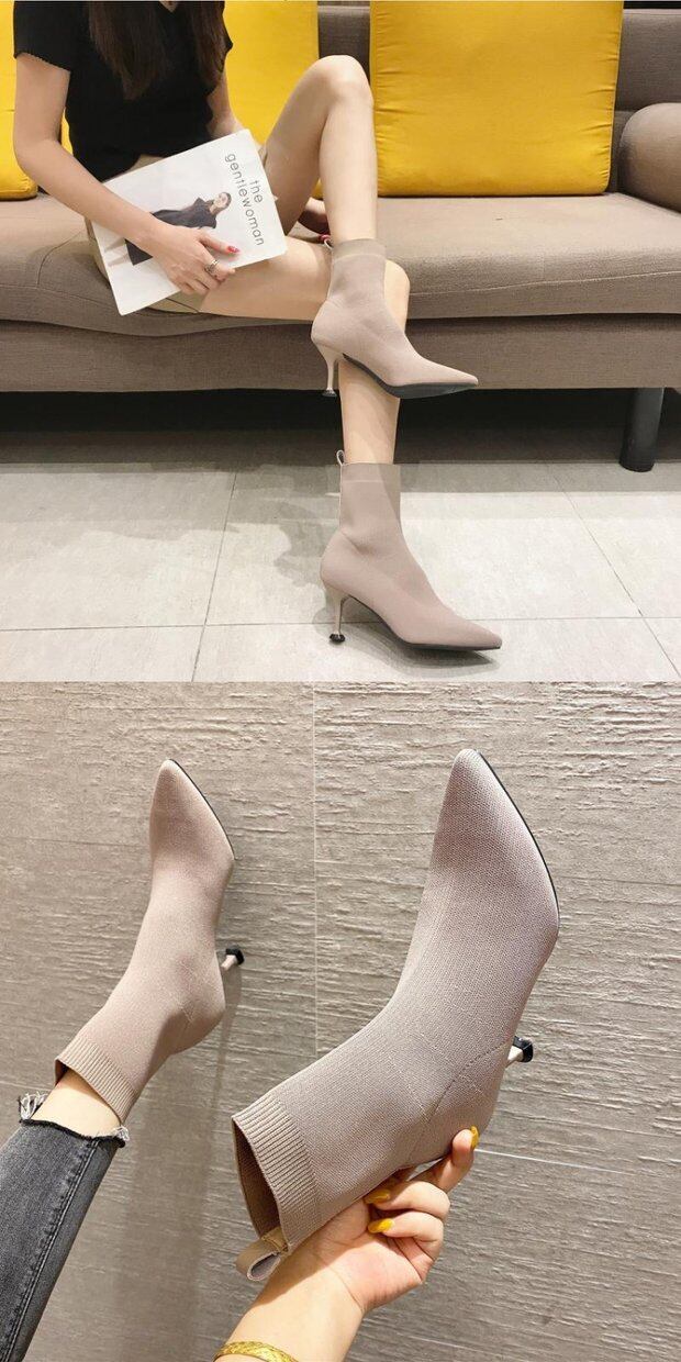 ネットレッドポインテッドハイヒールファッションブーツ2020秋新作ニットソックスブーツインファインヒール通気性シングルブーツ女性 靴 シューズ オータム 秋物 タイツ ストッキング インポートシューズ mi6282722297670