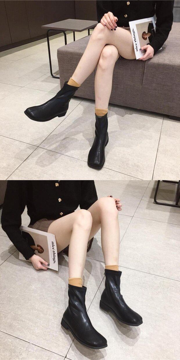 四角いつま先の太いヒールのショートブーツの女性2020年秋の新しいローヒールオールマッチシングルブーツジッパーショートチューブナイトブーツのバージョン 靴 シューズ オータム 秋物 スクウェア インポートシューズ mi6217967704081