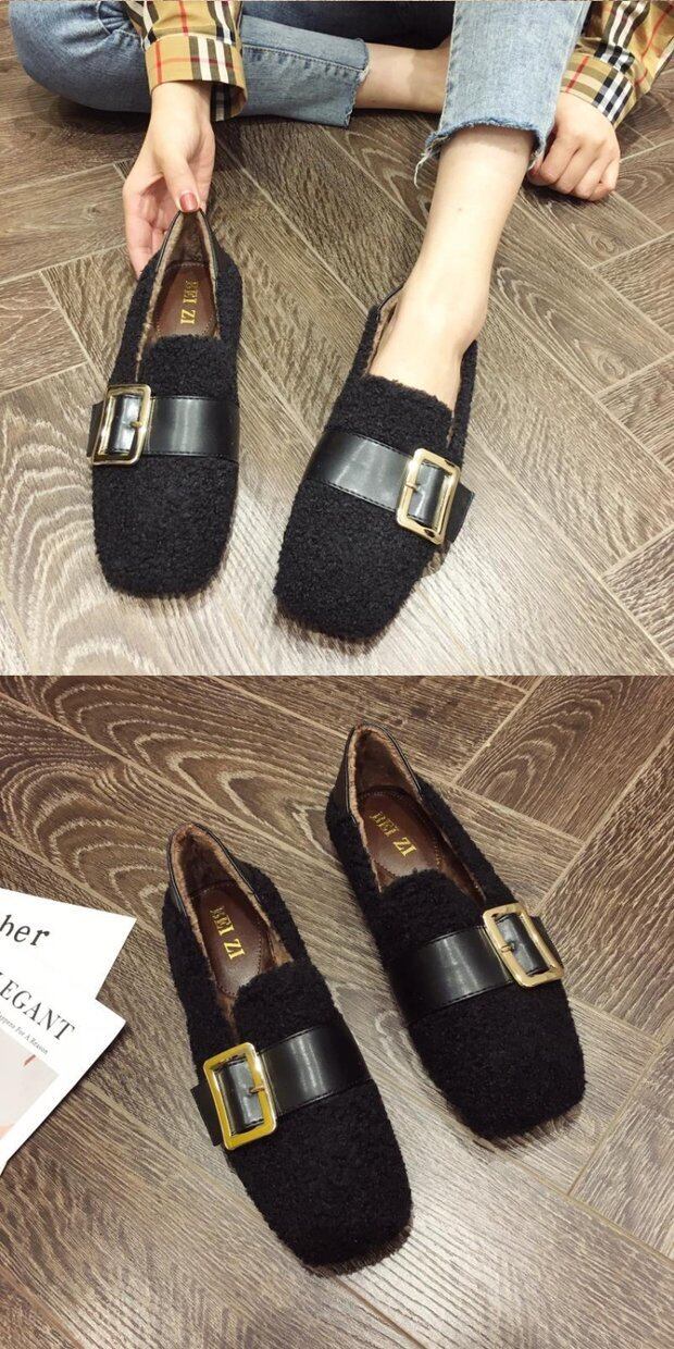 メタルバックルカール枝豆シューズレディース2020年秋冬新作アウタープラスふわふわシューズフラットウォームコットンシングルシューズレディース 靴 オータム 秋物 ウィンター 冬物 インポートシューズ mi6286468732467