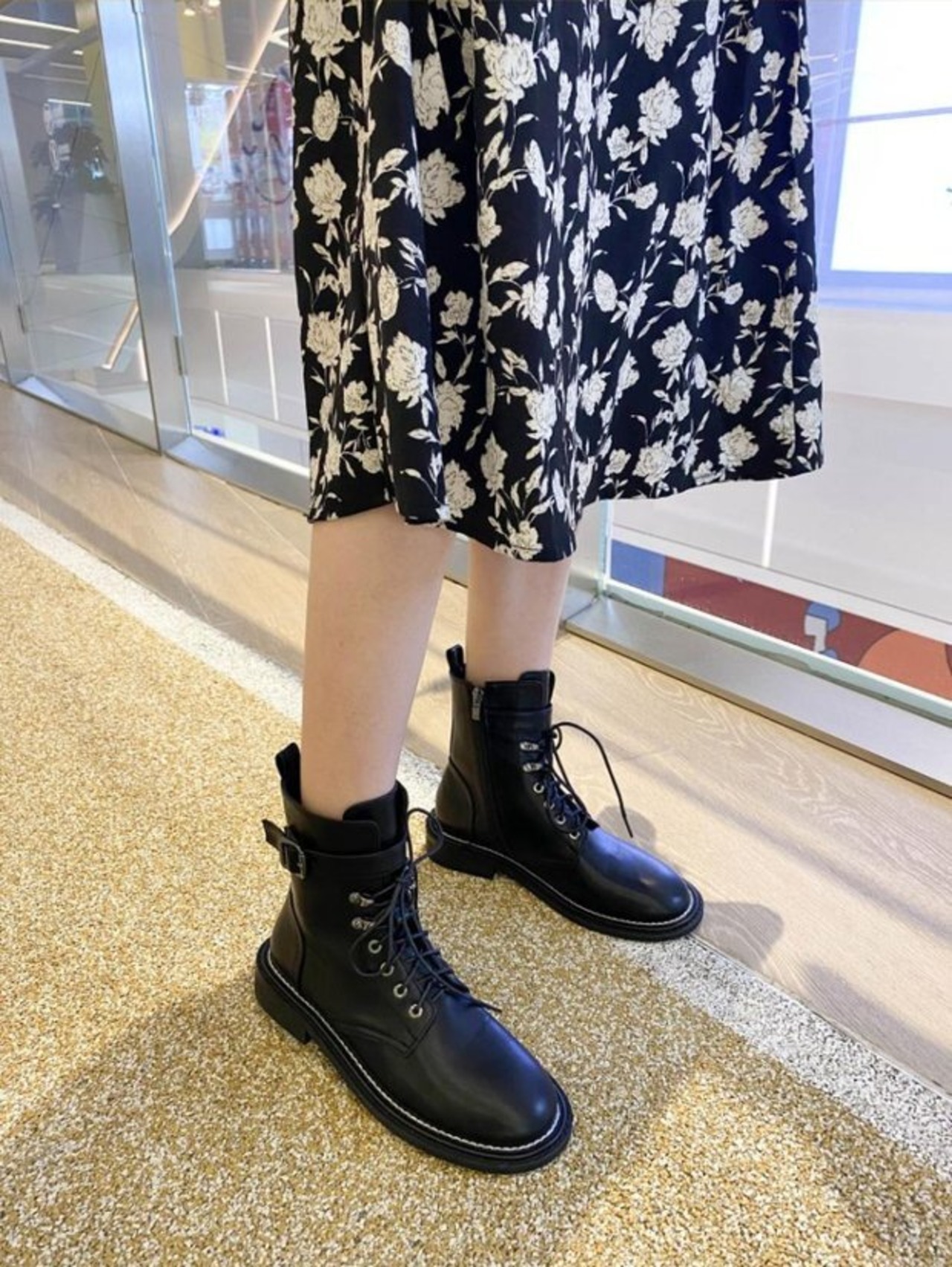 英国のレースアップブラックショートブーツ2020新しい春と秋のシングルブーツインハンサムな革のバックル機関車の薄いブーツ 靴 シューズ スプリング 春物 オータム 秋物 レザー インポートシューズ mi6239270084190