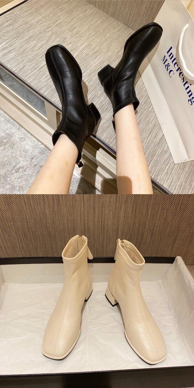ブーツ2020秋新バージョンのスクエアトゥバックジッパーミッドヒールとヌードブーツレディースショートチューブシックヒールコミューターショートブーツ 靴 シューズ オータム 秋物 スクウェア インポートシューズ mi6265692124928