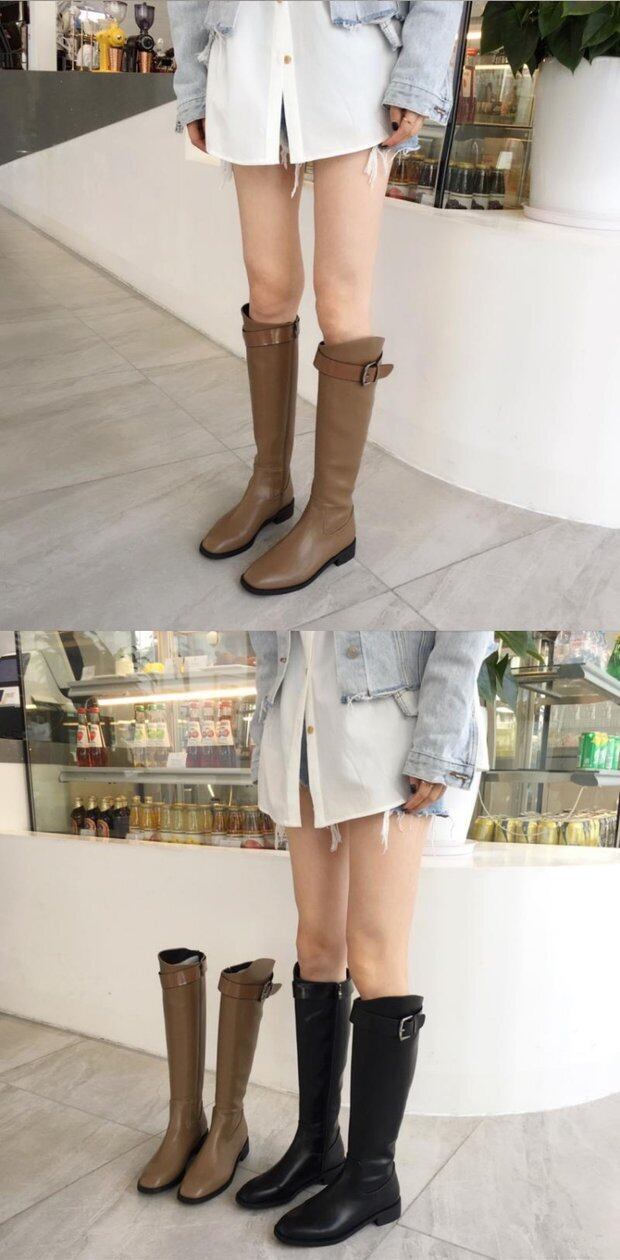 ブリティッシュベルトバックルロングブーツ2020秋冬新作ファッショントールハンサムナイトブーツミッドヒールシンロングブーツ 靴 シューズ オータム 秋物 ウィンター 冬物 ハーネス インポートシューズ mi6256515597219