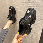 2020年秋ニュースタイル厚底厚ヒールレースアップスモールレザーシューズ女性ブリティッシュスタイルパテントレザー増加スターローファー 靴 オータム 秋物 インポートシューズ mi6211674670575
