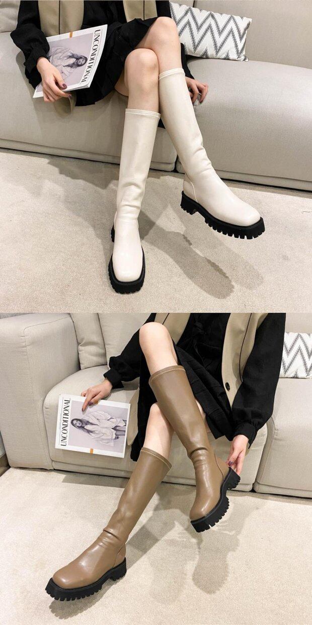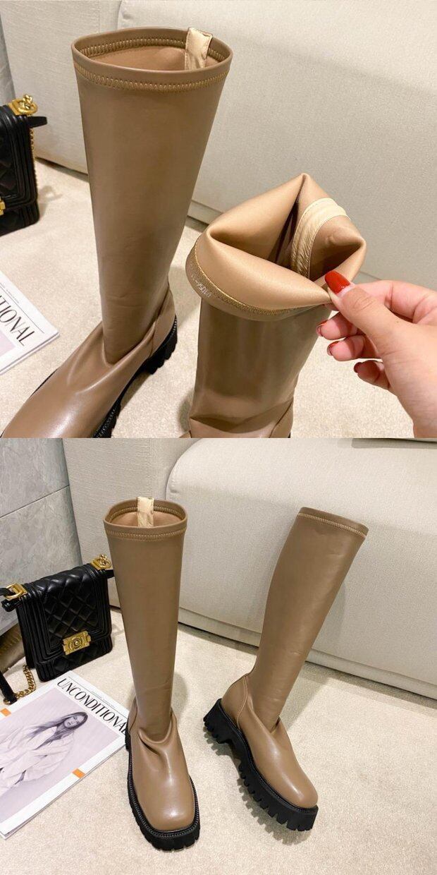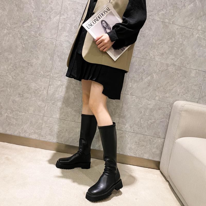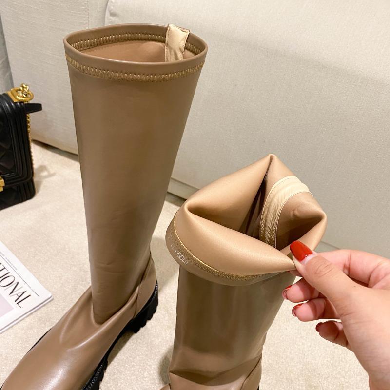 ハンサムなロングナイトブーツ女性2020秋冬新袖ソフトレザーブーツミッドヒールハイブーツ膝丈ブーツ 靴 シューズ オータム 秋物 ウィンター 冬物 インポートシューズ mi6289335891380
