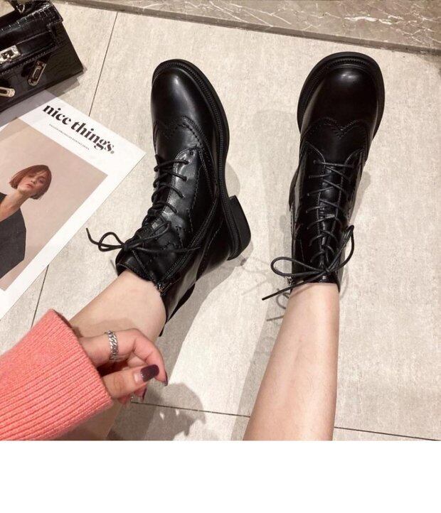 ブリティッシュスタイルのブロックブラックブーツ子供2020年女性の冬プラスベルベットミッドヒールショートブーツタイドイン薄いオートバイブーツ 靴 シューズ ウィンター 冬物 インポートシューズ mi6230933048666