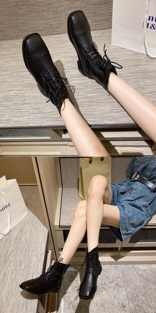 ハンサムなニッチなレースアップカジュアルショートブーツ女性2020年秋の新しいスタイルのスクエアトゥショートチューブファッションブーツとヌードブーツの女性 靴 シューズ オータム 秋物 スクウェア インポートシューズ mi6211041641144