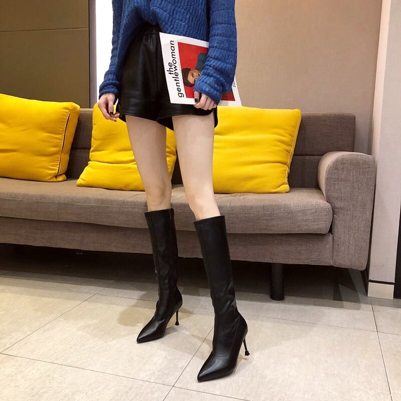 ブラックレザーノーニーブーツレディース2020秋冬新作スモールポインテッドハイヒールハイブーツハイシングルブーツ 靴 シューズ オータム 秋物 ウィンター 冬物 インポートシューズ mi6250033646056
