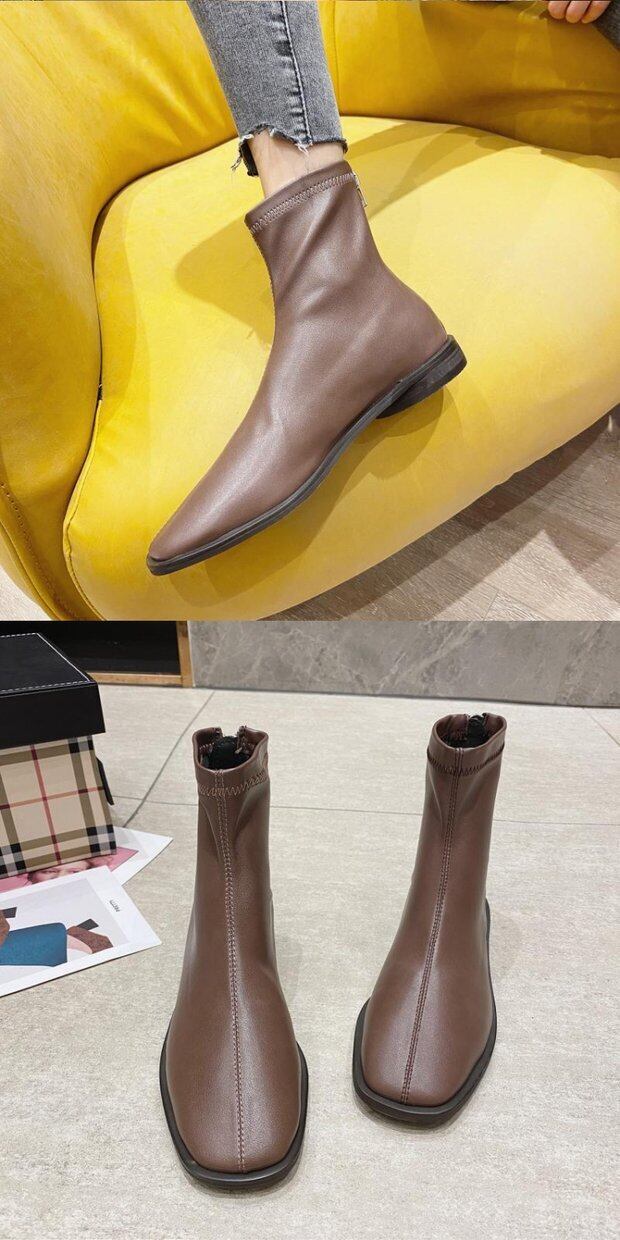チェルシーブーツ2020秋冬新作東大門ソフトレザーブーツ快適なフラットバックジッパーショートブーツトレンド 靴 シューズ オータム 秋物 ウィンター 冬物 インポートシューズ mi6234850415741