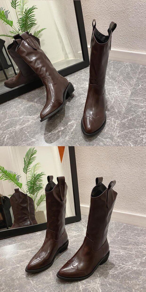 レトロなカウボーイウエスタンブーツレディース2020秋冬新作ブローチ刻まれた先のとがったカジュアルミドル丈ブーツキッズトレンド 靴 シューズ オータム 秋物 ウィンター 冬物 インポートシューズ mi626798400077