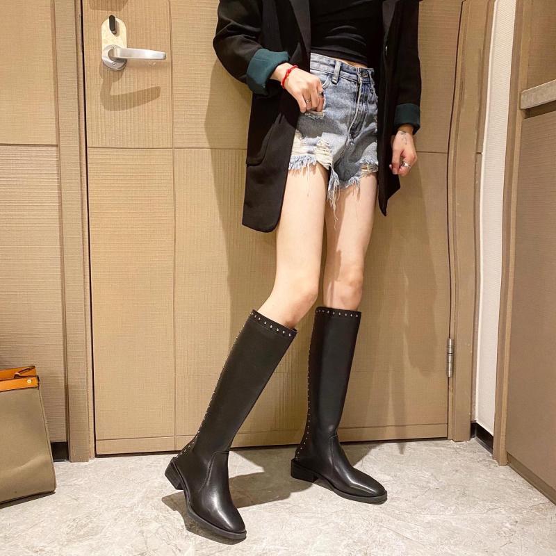 パンクファンバイクリベットライダーブーツ女性の2020年秋冬新しいOufanスクエアトゥローヒールだがニーブーツ 靴 シューズ オータム 秋物 ウィンター 冬物 スクウェア インポートシューズ mi6261424953605