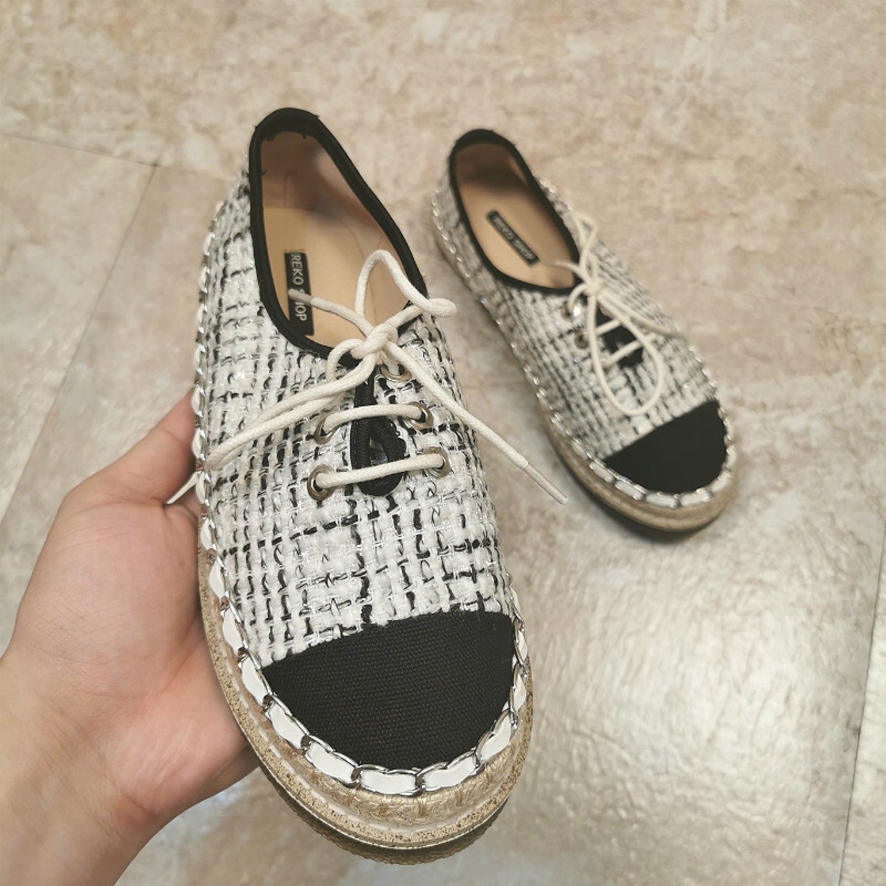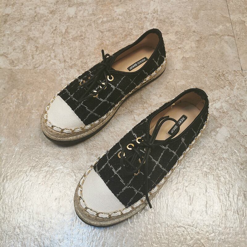 靴女性の2020年秋新しいファッションメタルチェーン小さな香りスタイルの女性の靴レトロ織りカジュアルフラットシューズ女性 オータム 秋物 インポートシューズ mi6264362677720