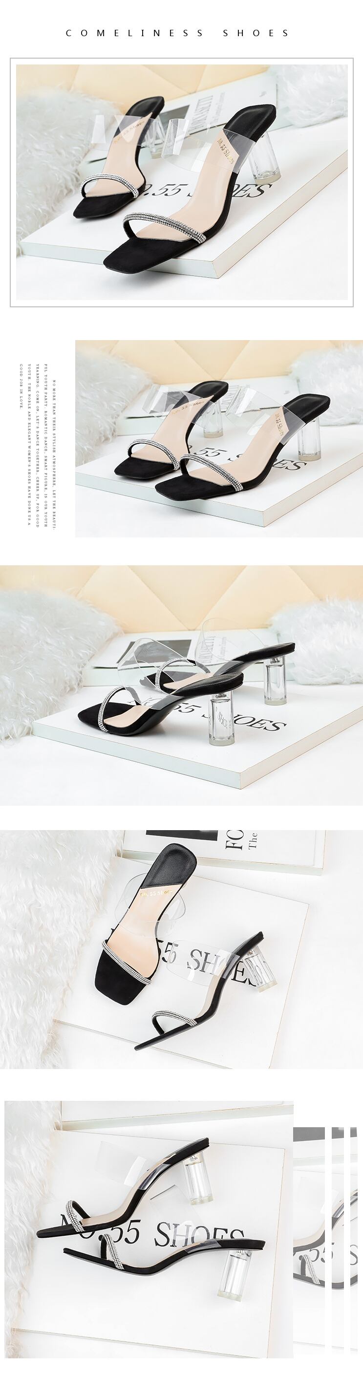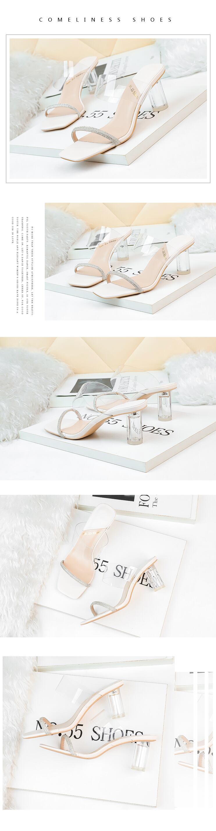 サマーレディースミュールクリスタルヒール 靴 シューズ 夏物 スクウェア mi6285541807735