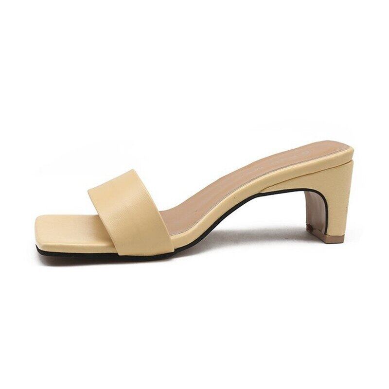 サマーレディースミュールヒールドレス 靴 シューズ パンプス 夏物 スクウェア mi629909140379