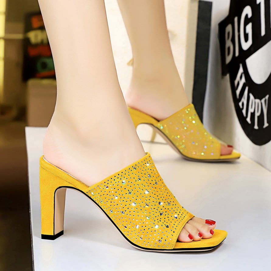 レディースクリスタルレッドブラックヒールミュールサマー 靴 シューズ パンプス 大人ガーリー スウィート キュート カジュアル 夏物 mi6296336901292