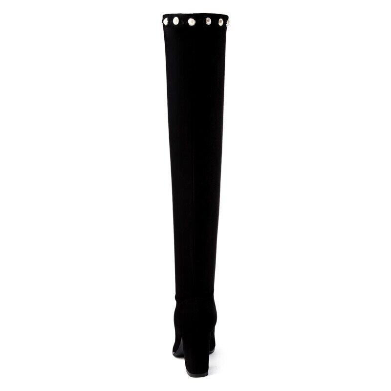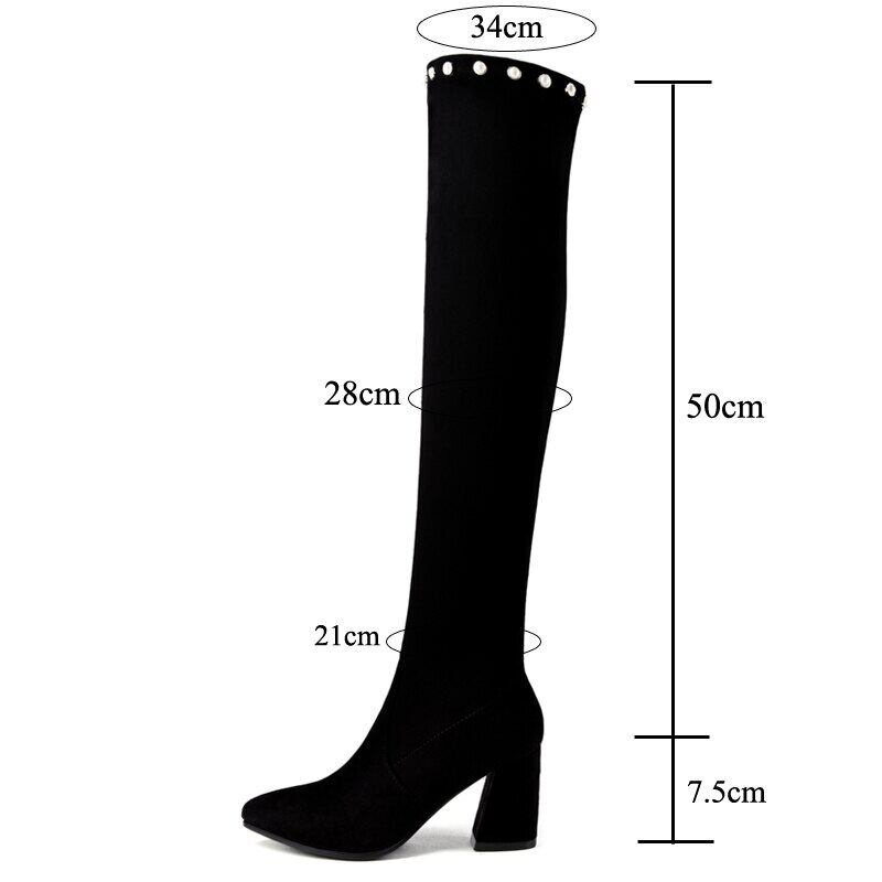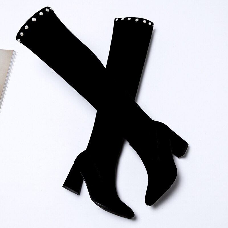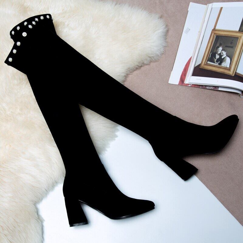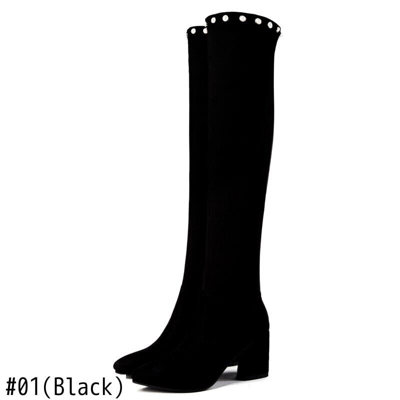 ウィンターブーツレディースロングパールソリッド ブラック 靴 シューズ 大きめサイズ 冬物 真珠 ソリッドカラー mi6278678329482