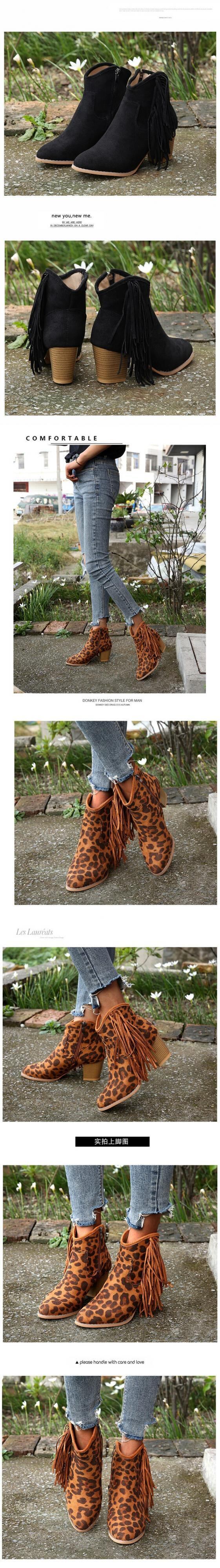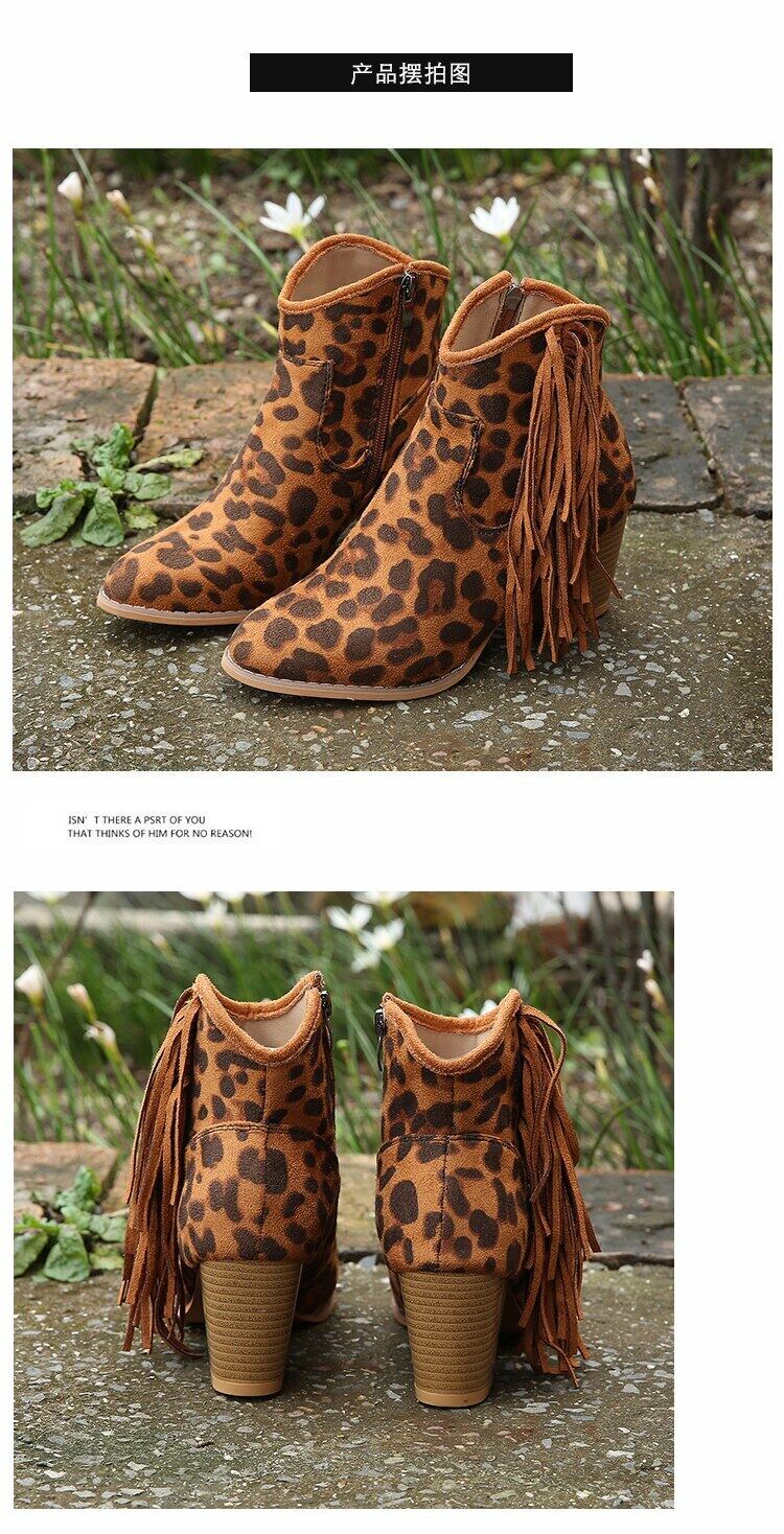 ウィンターブーツレオパードアンクルレディーススタンダードジッパーヒール 靴 シューズ レトロ 大きめサイズ 冬物 スクウェア mi6242067563961