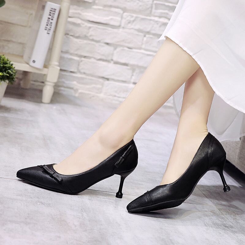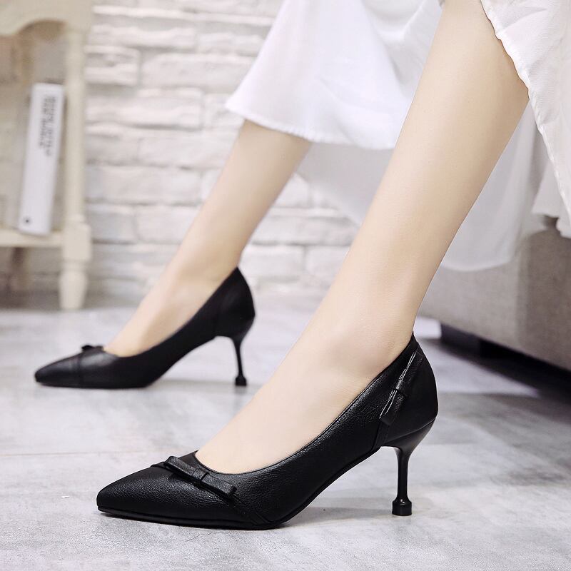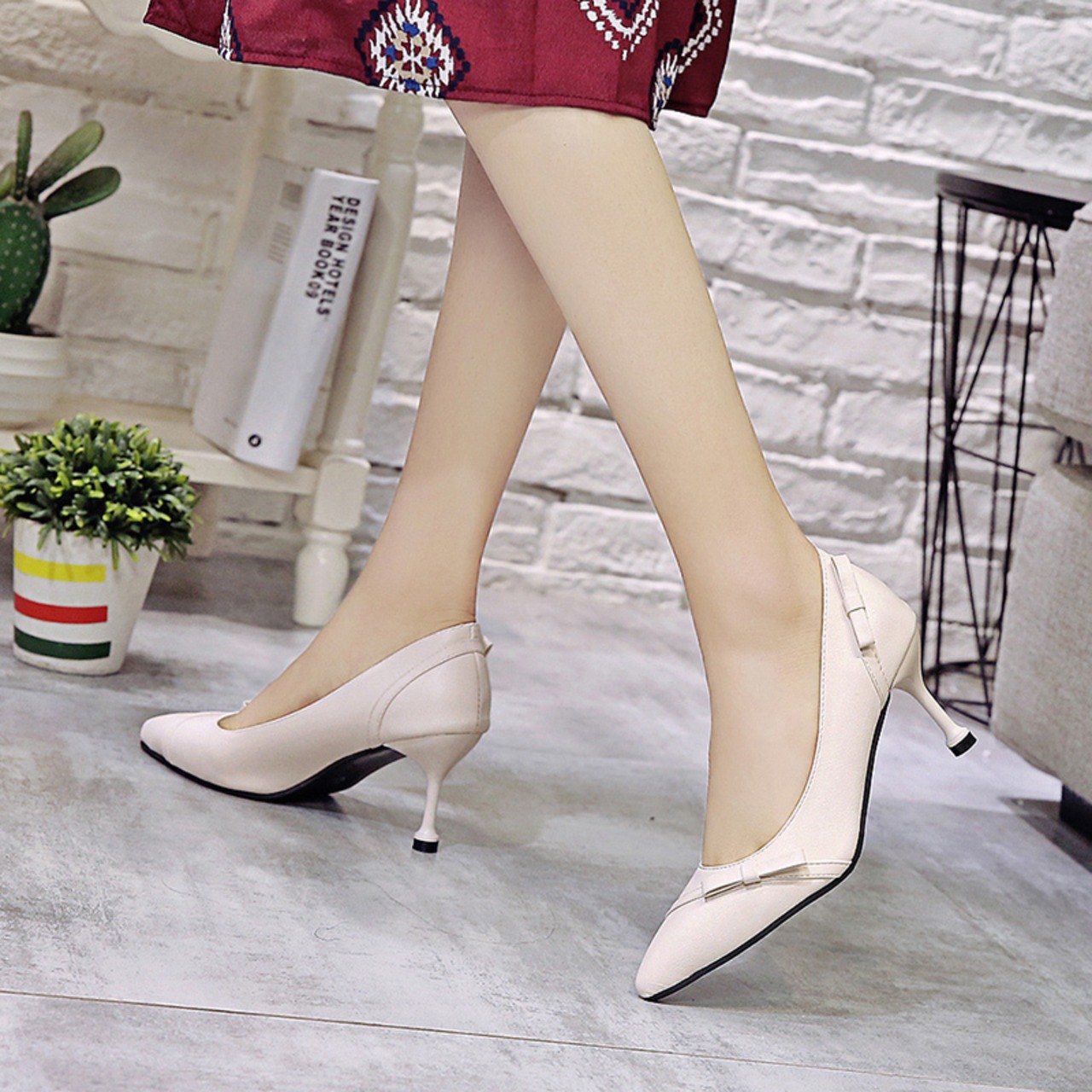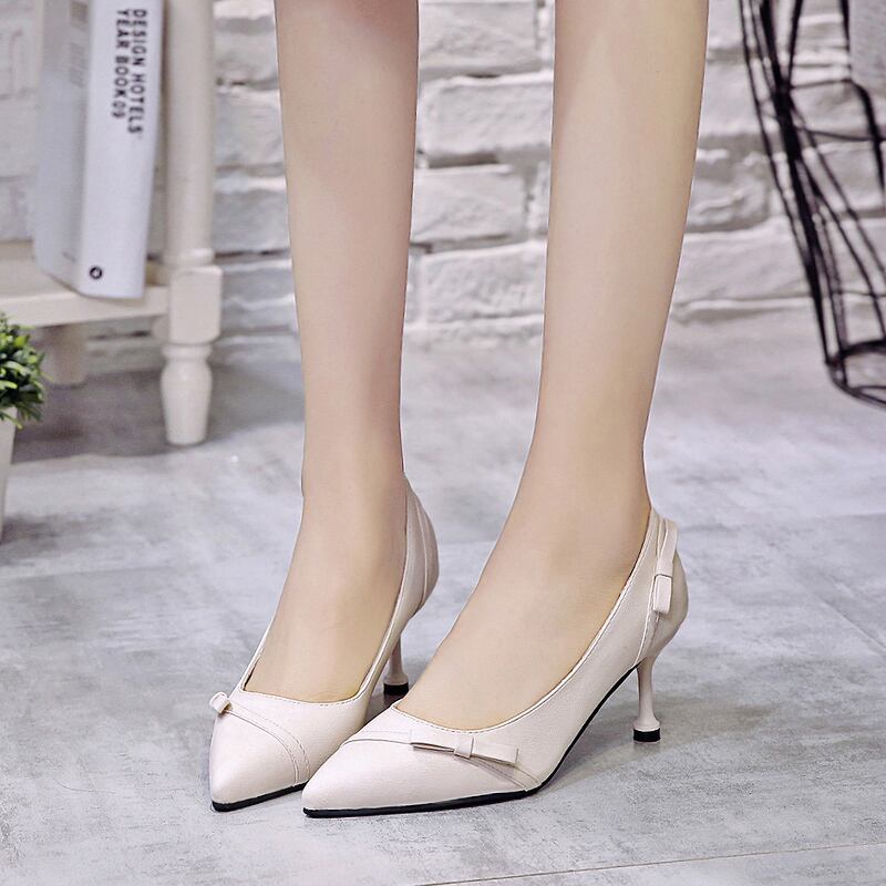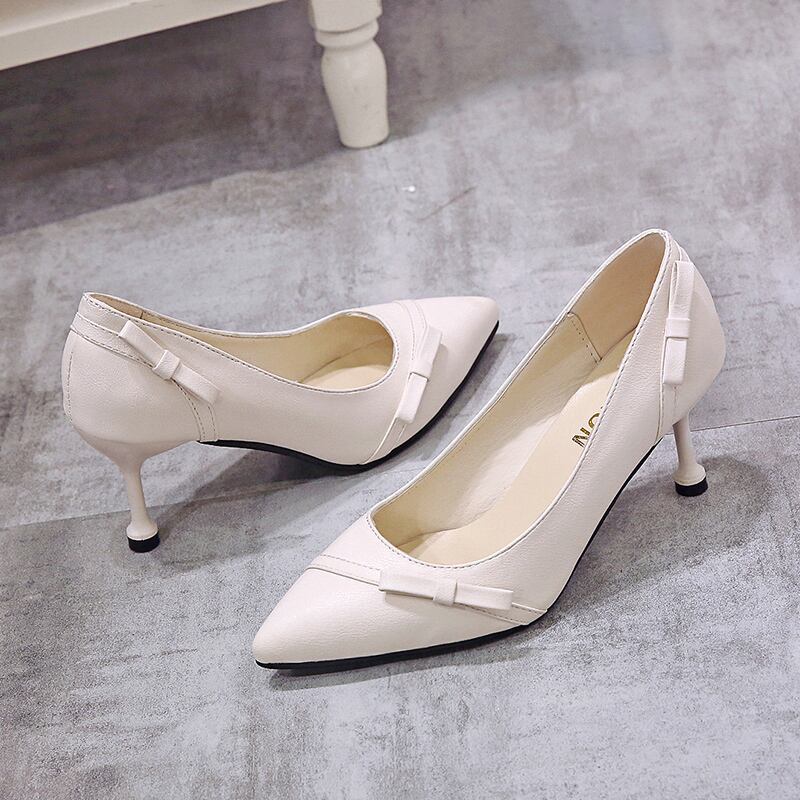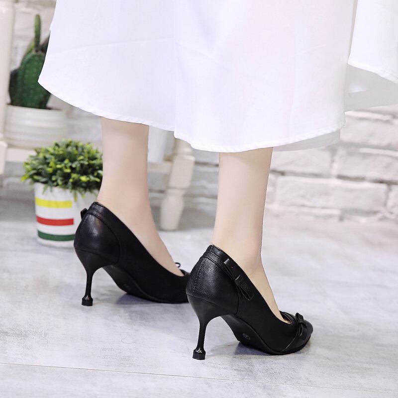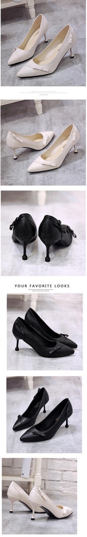 レディースリボン薄手ヒールレザー 靴 シューズ パンプス mi627302558851