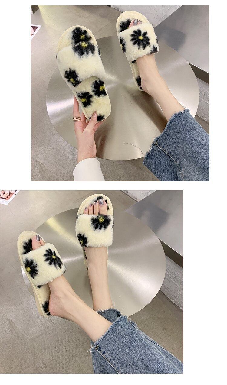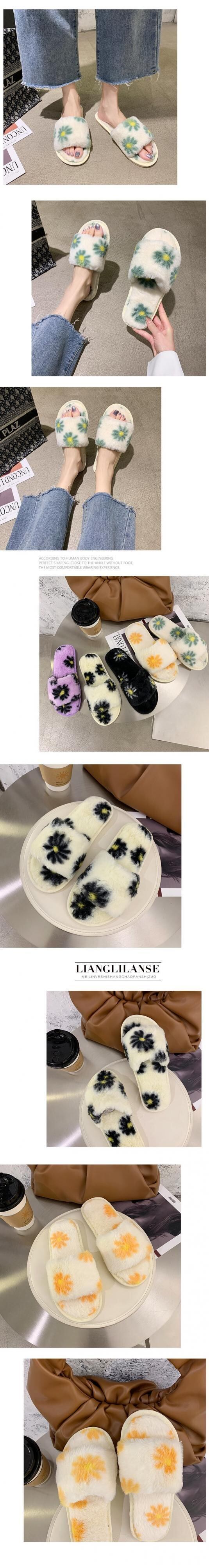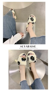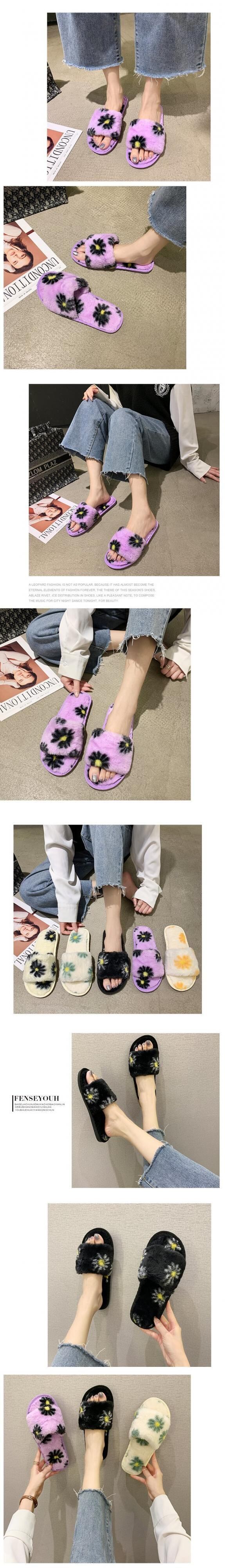 レディースミュールフェイクファーウィンターFlowerデザイン 靴 シューズ 大きめサイズ 冬物 スリッポン フラワーデザイン mi6264997881717