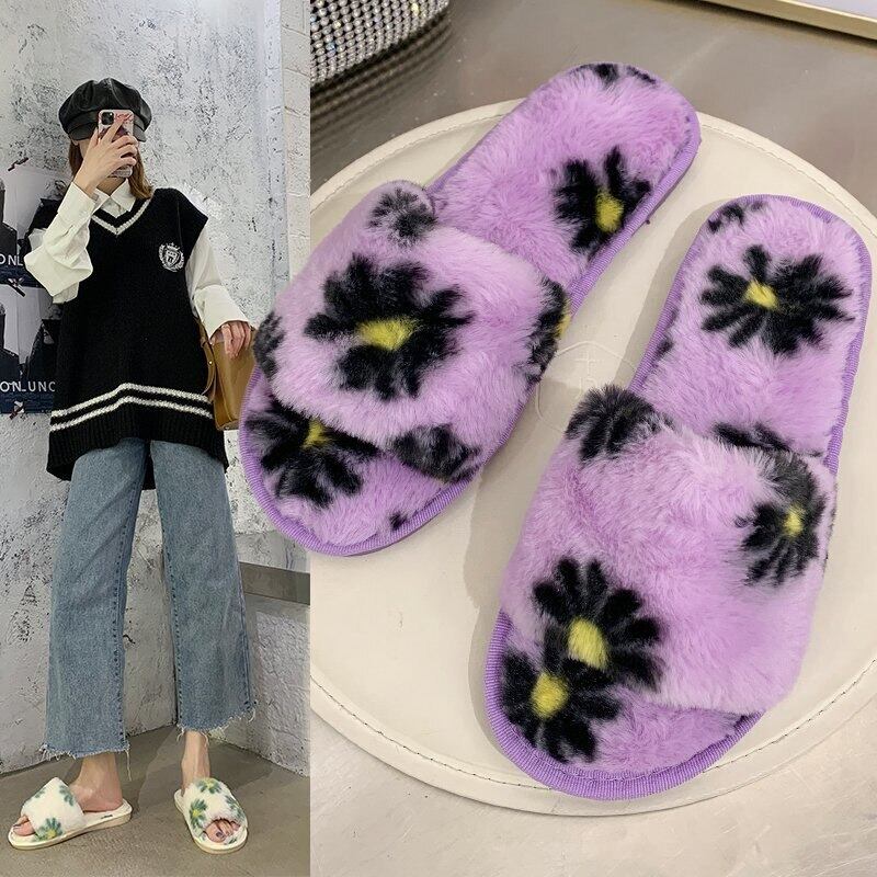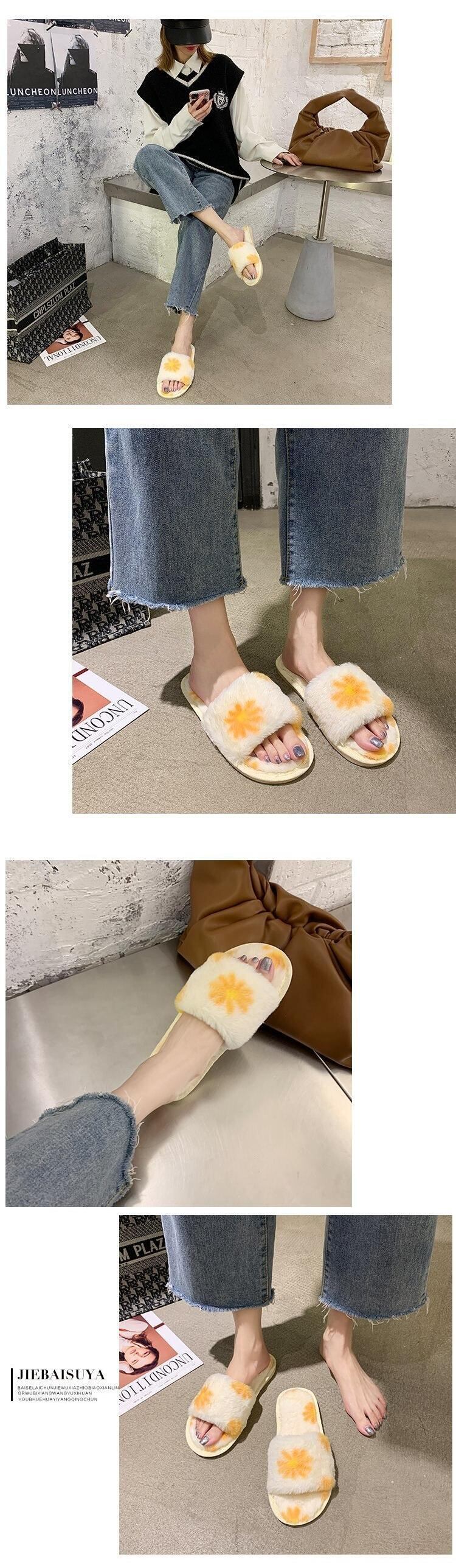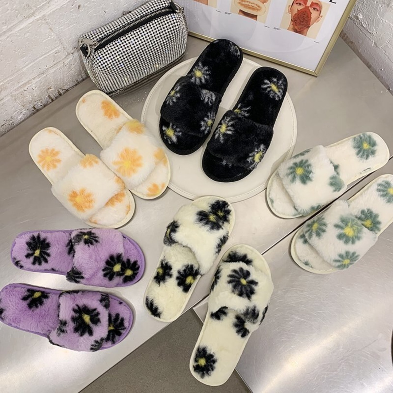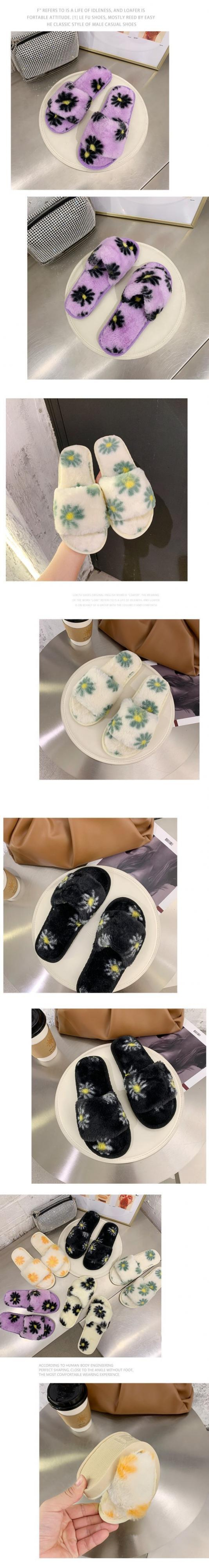 レディースミュールフェイクファーウィンターFlowerデザイン 靴 シューズ 大きめサイズ 冬物 スリッポン フラワーデザイン mi6264997881717