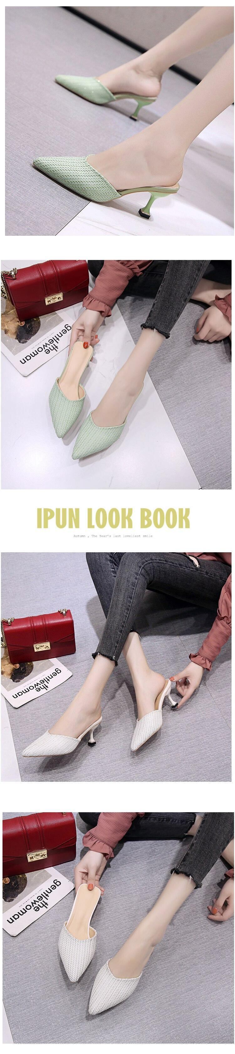 ミュールレディースソリッド レザー薄手ヒール 靴 シューズ ソリッドカラー mi6281996196380