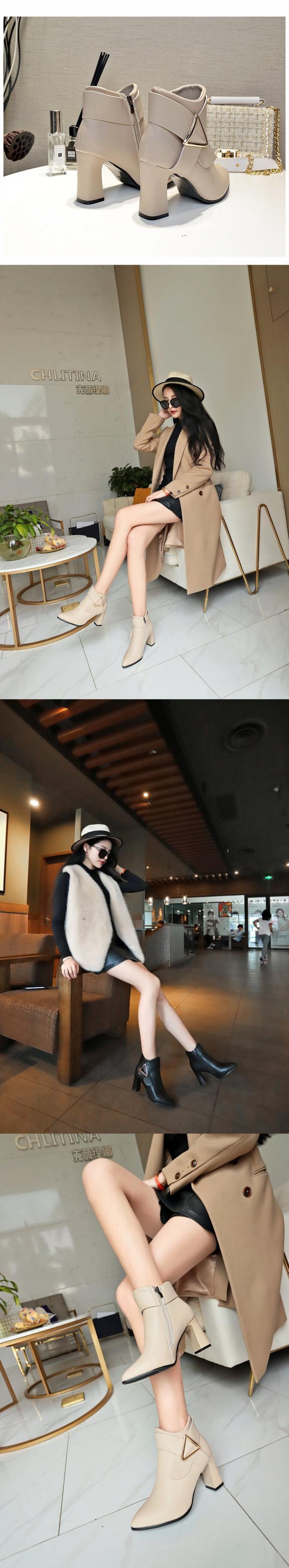 オータムソリッド レザーブーツウィンターレディースジッパーヒール 靴 シューズ 秋物 冬物 ソリッドカラー スクウェア mi6297895300710
