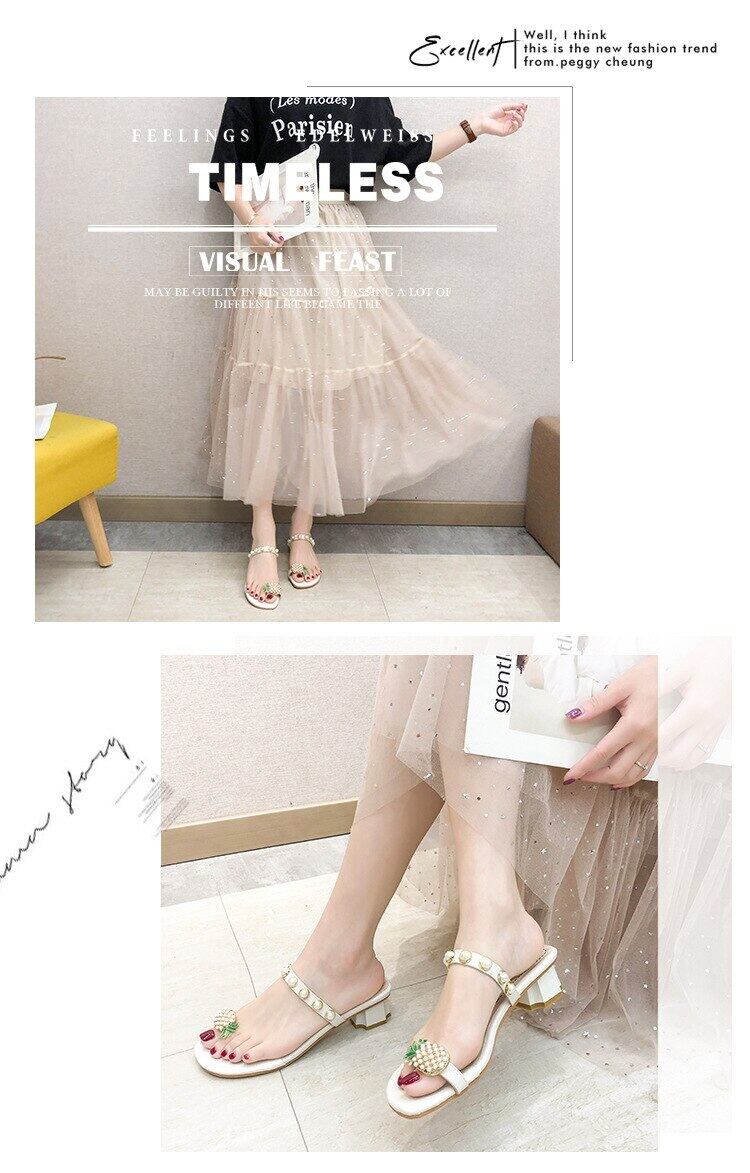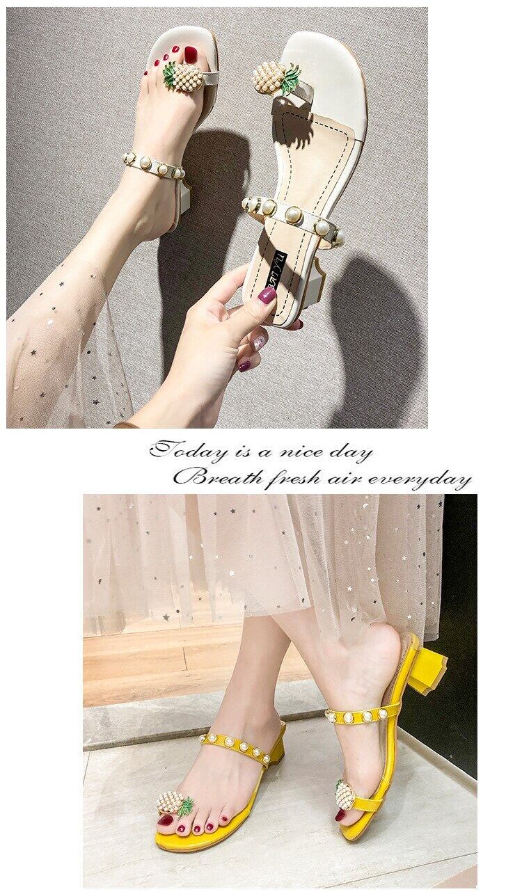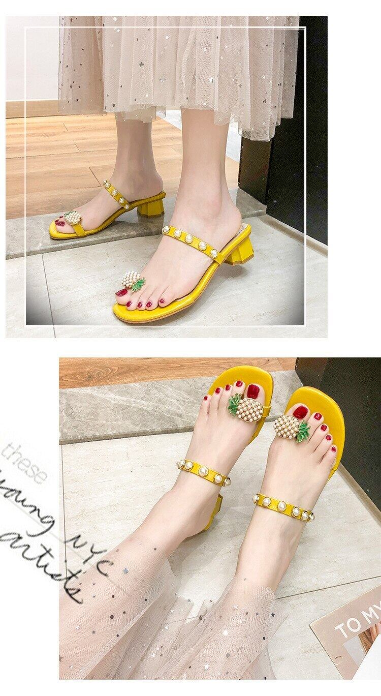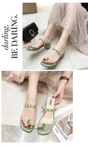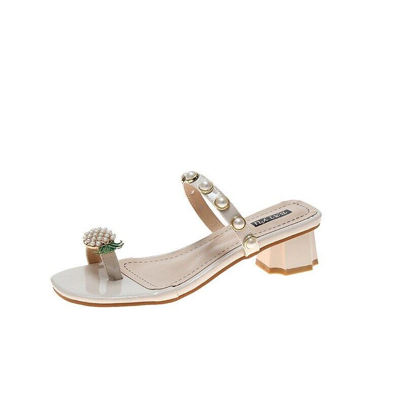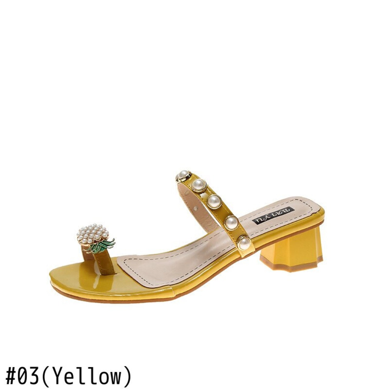サマーレディースミュールバックルパールヒール 靴 シューズ 夏物 真珠 スクウェア mi6263164828531