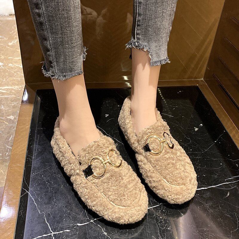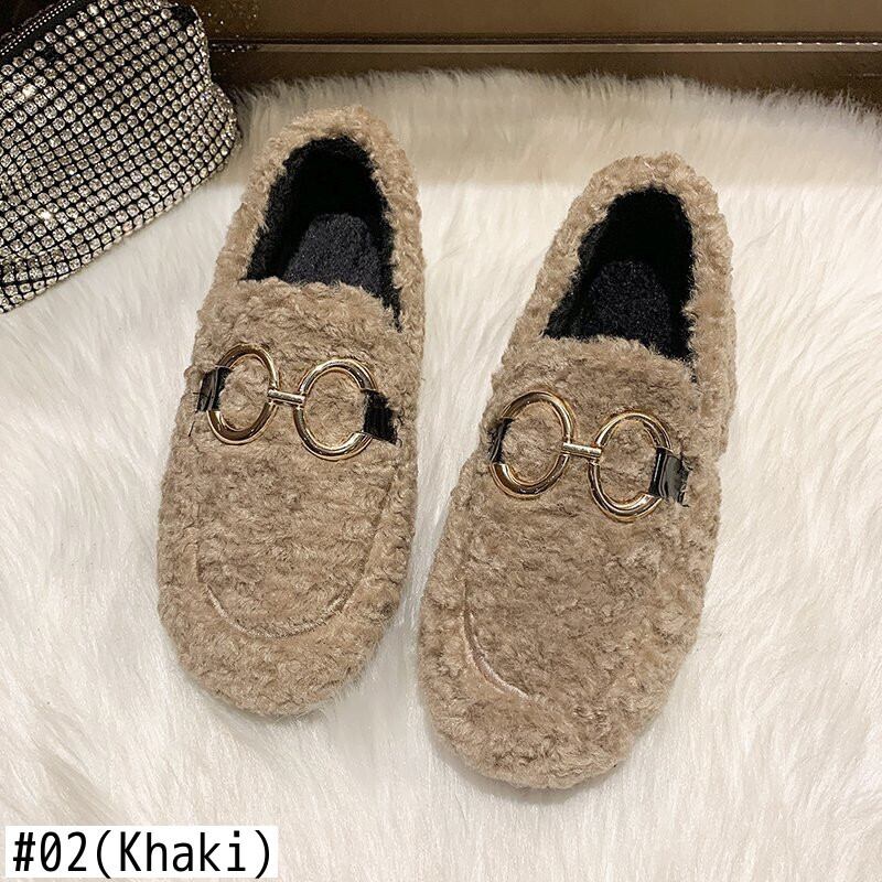 オータムウィンターファーレディースソリッド メタルバックル 靴 シューズ ローファー 大きめサイズ 秋物 冬物 スリッポン ソリッドカラー mi6263709555277