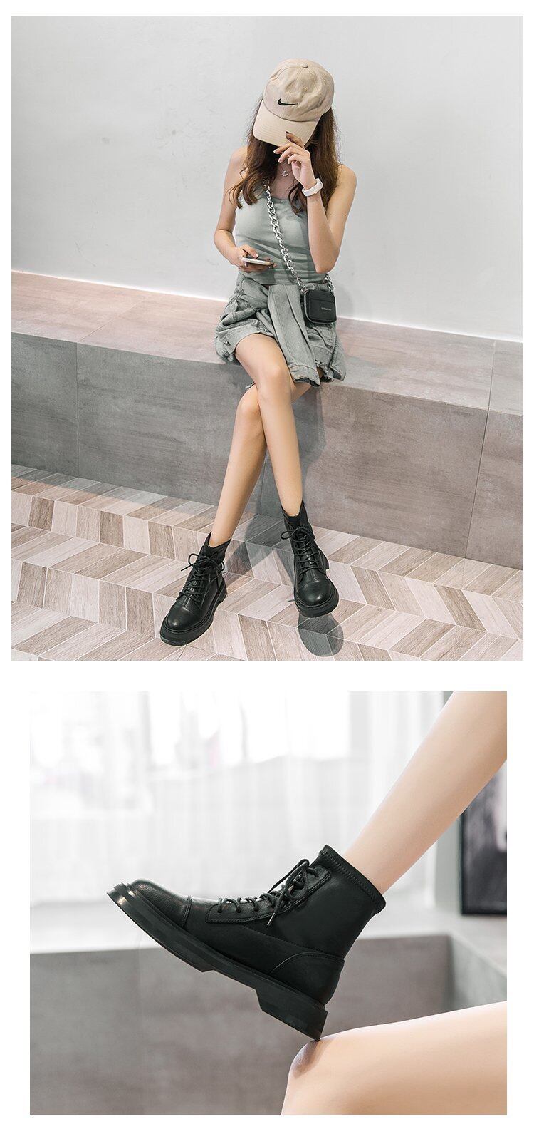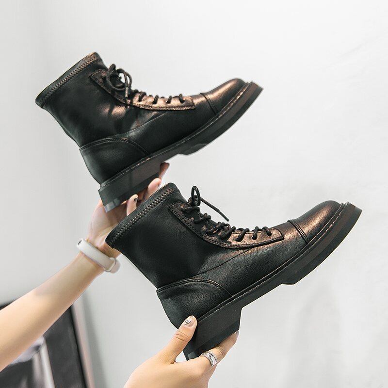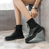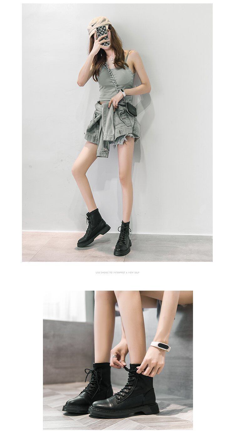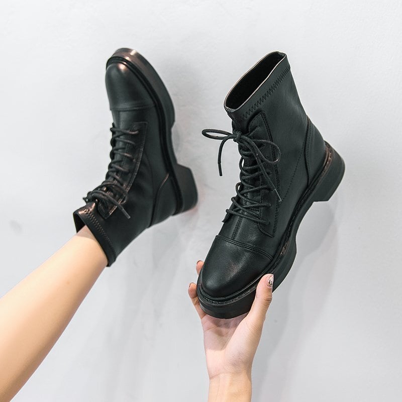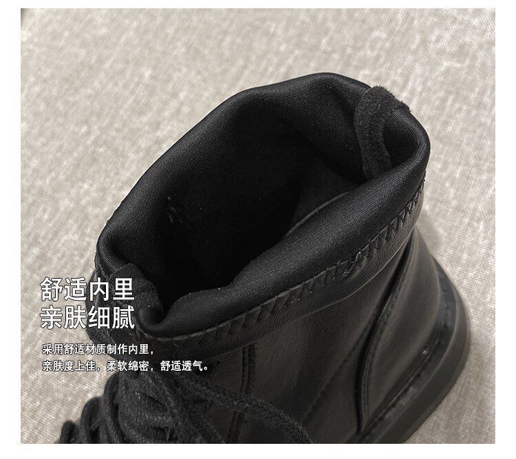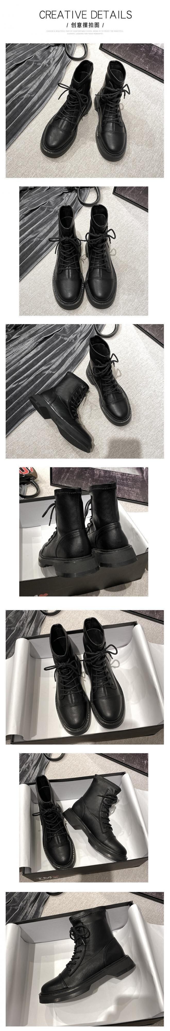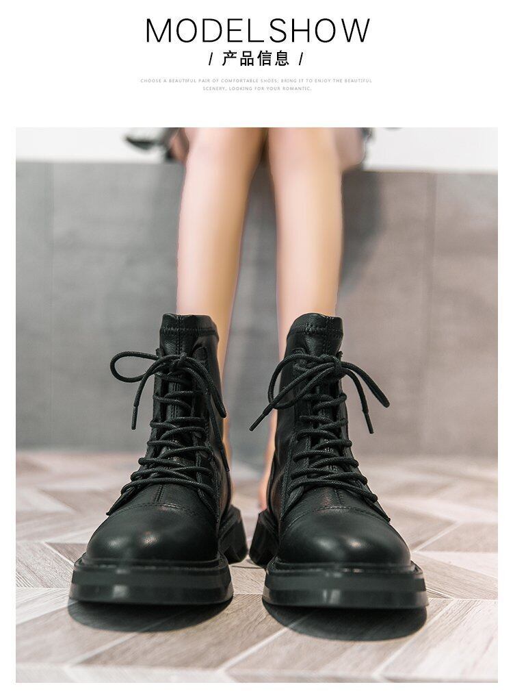 アンクルブーツレディースオータムソリッド ブラックレザーウィンターレース 靴 シューズ 大きめサイズ 秋物 冬物 レースアップ ソリッドカラー mi624135763144