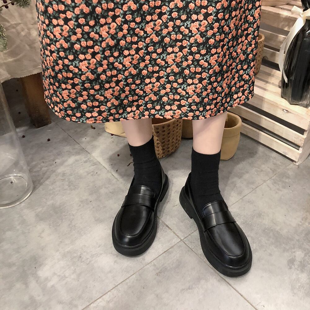 ベルベットレザーレディーススタンダードヒールブラックシングル 靴 シューズ レトロ ラウンドトー mi6284264685874