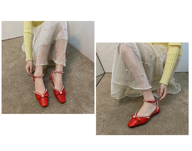 パールシングルスタンダードスプリングサマーサンダル 靴 シューズ リボン レトロ 春物 夏物 真珠 mi6248076386857