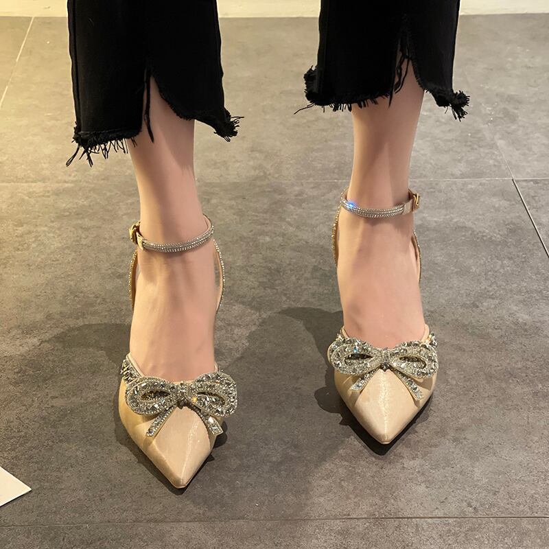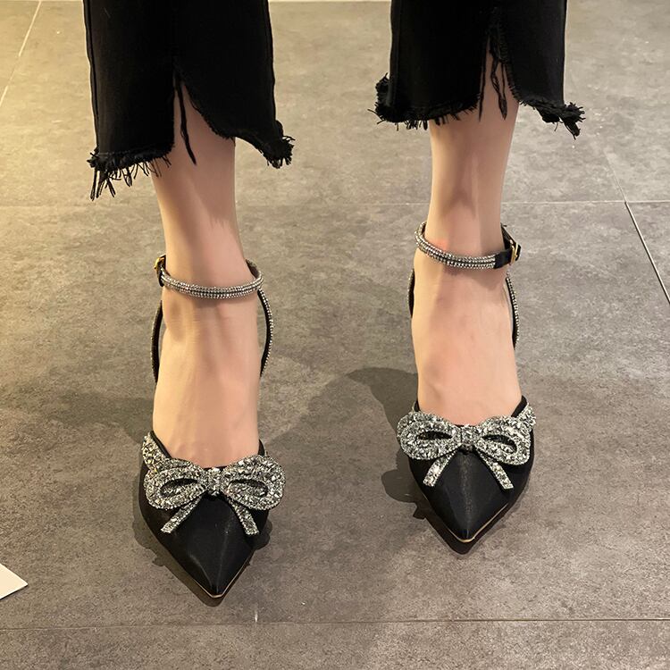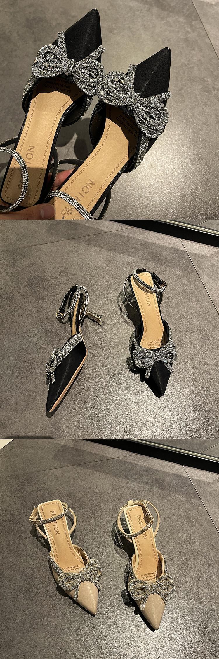 サンダルサマーレッドスタイルラインストーンリボンヒール 靴 シューズ 夏物 5/6 mi621687311323