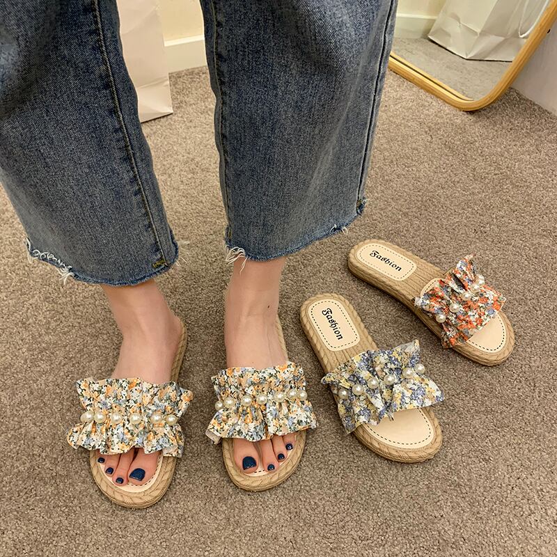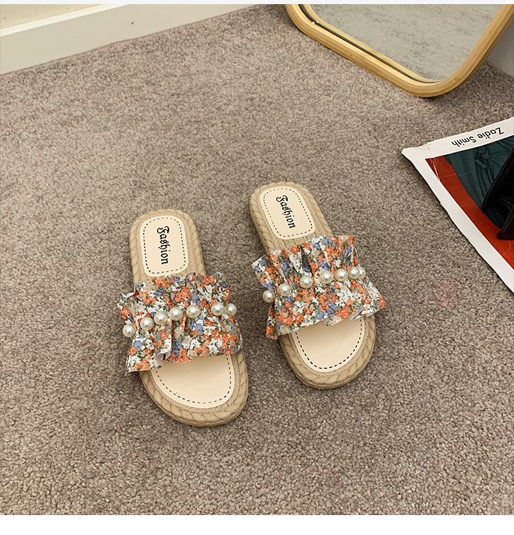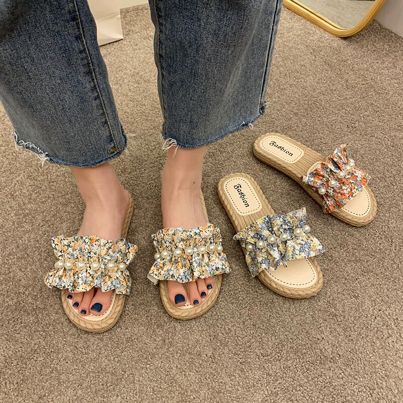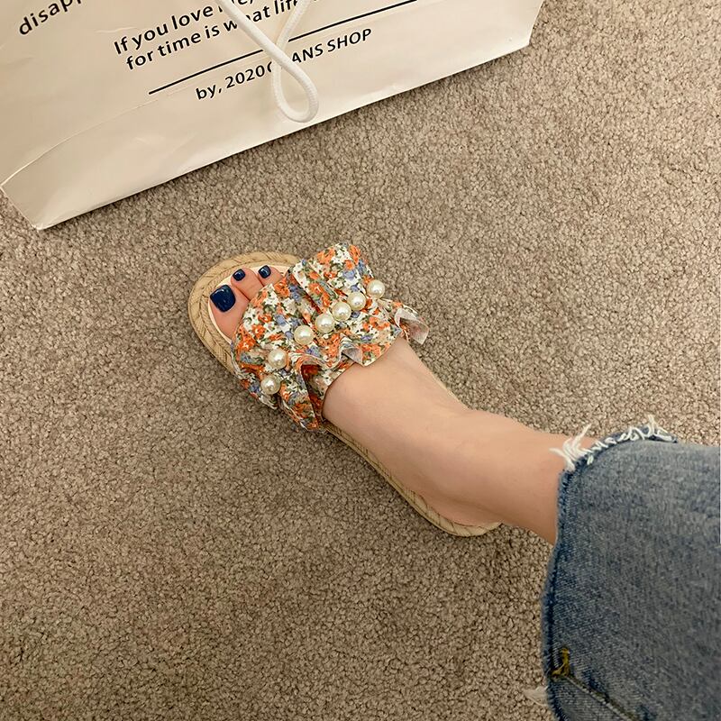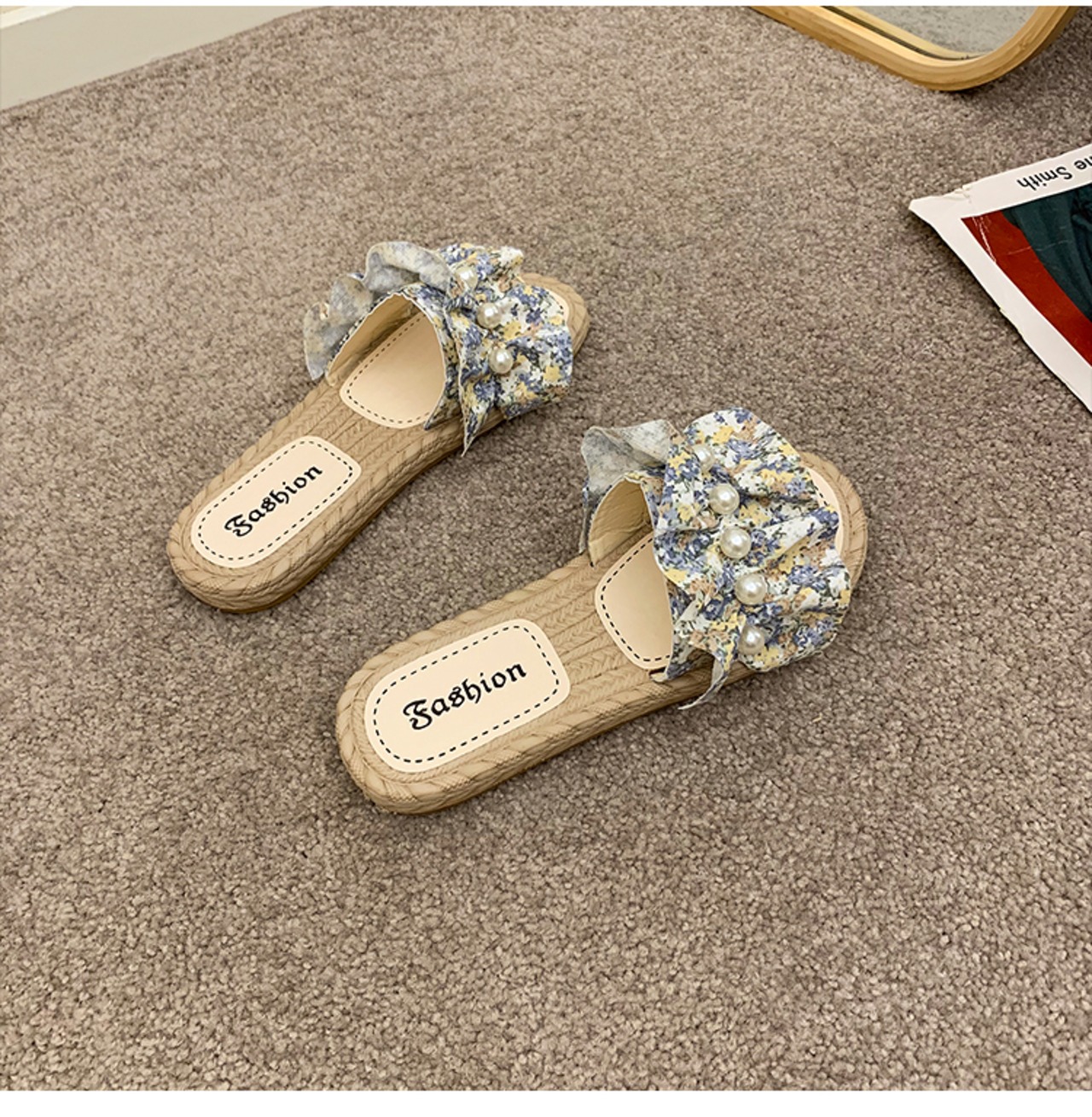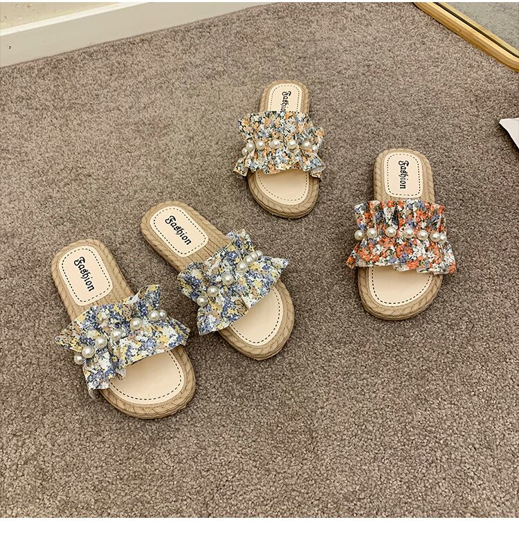 ミュールレディースサマーフローラルパール 靴 シューズ 夏物 ビーチ 花柄 真珠 5/6 mi6255434259838