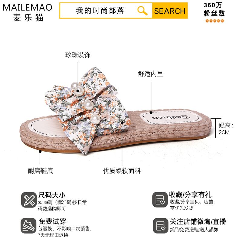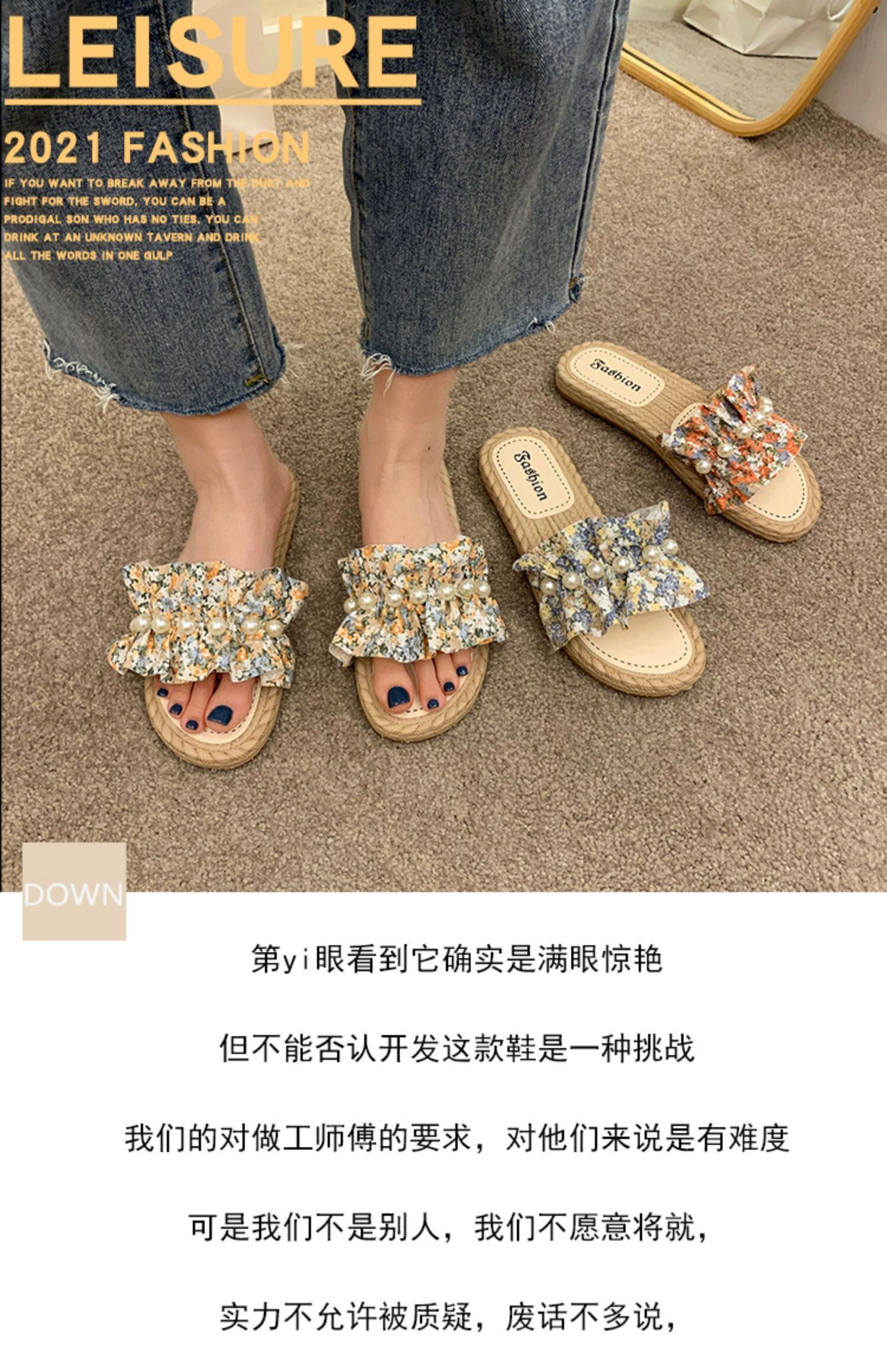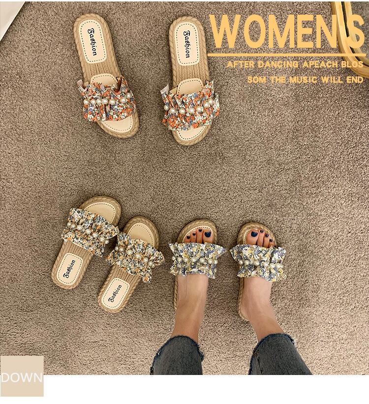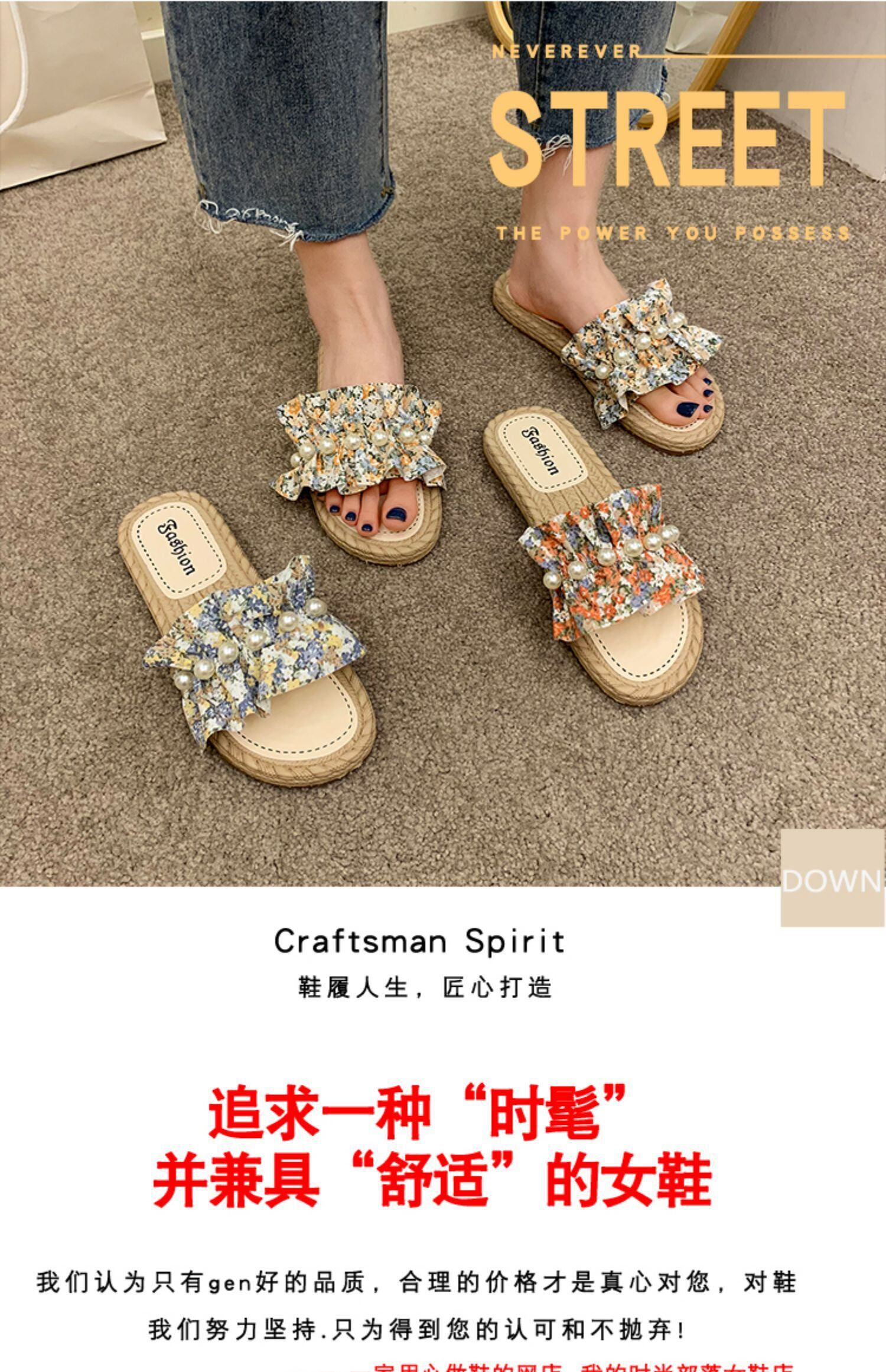 ミュールレディースサマーフローラルパール 靴 シューズ 夏物 ビーチ 花柄 真珠 5/6 mi6255434259838