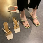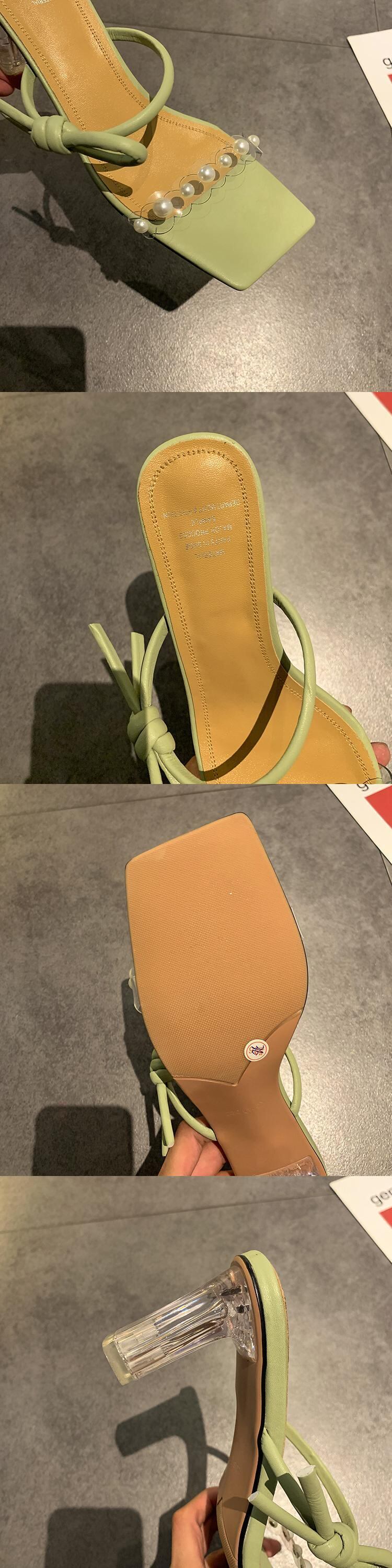 サマーパールカラーヒール ハイヒール 靴 シューズ ミュール 夏物 ピュア 真珠 スクウェア 5/6 mi625889903515