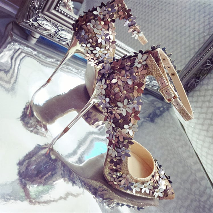オータムFlowerデザイン ドレス ヒールラインストーンシングルシルバーレディース 靴 シューズ ハイヒール 秋物 フラワーデザイン 銀 12/7 ハイヒール mi6294862655711