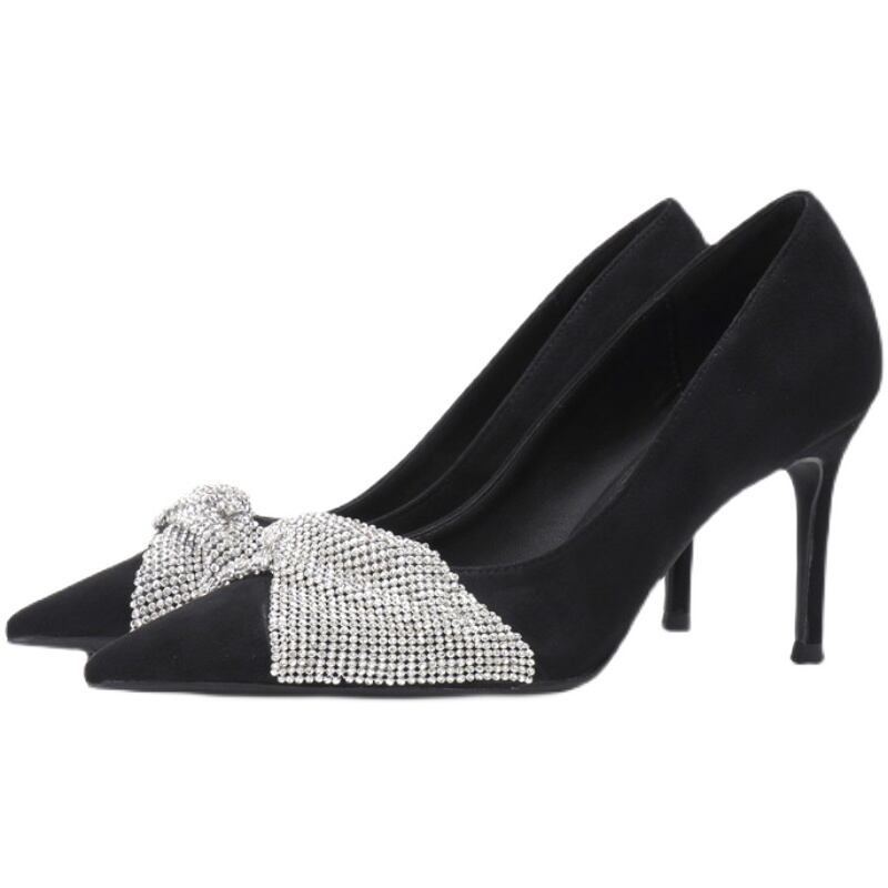 ブラックヒールオータムウィンターラインストーン薄手シングル 靴 シューズ ハイヒール 秋物 冬物 3/14 春夏 SS mi6293440033354