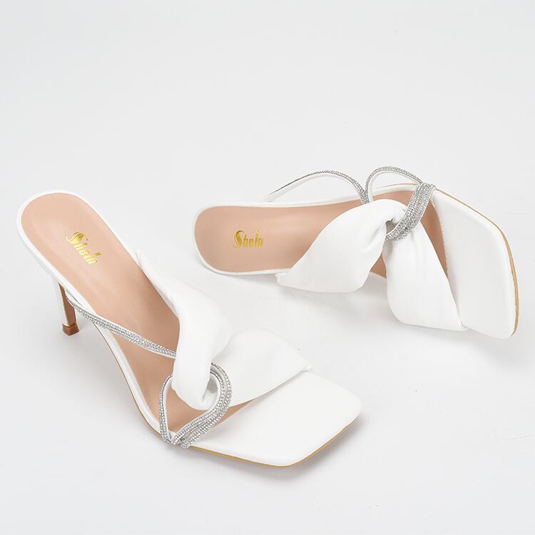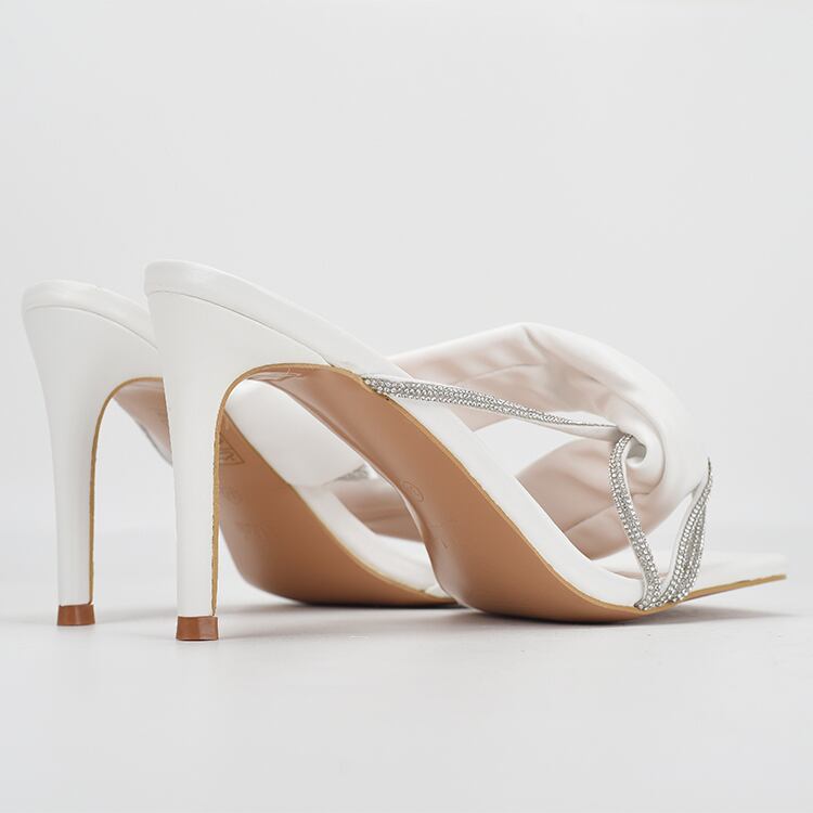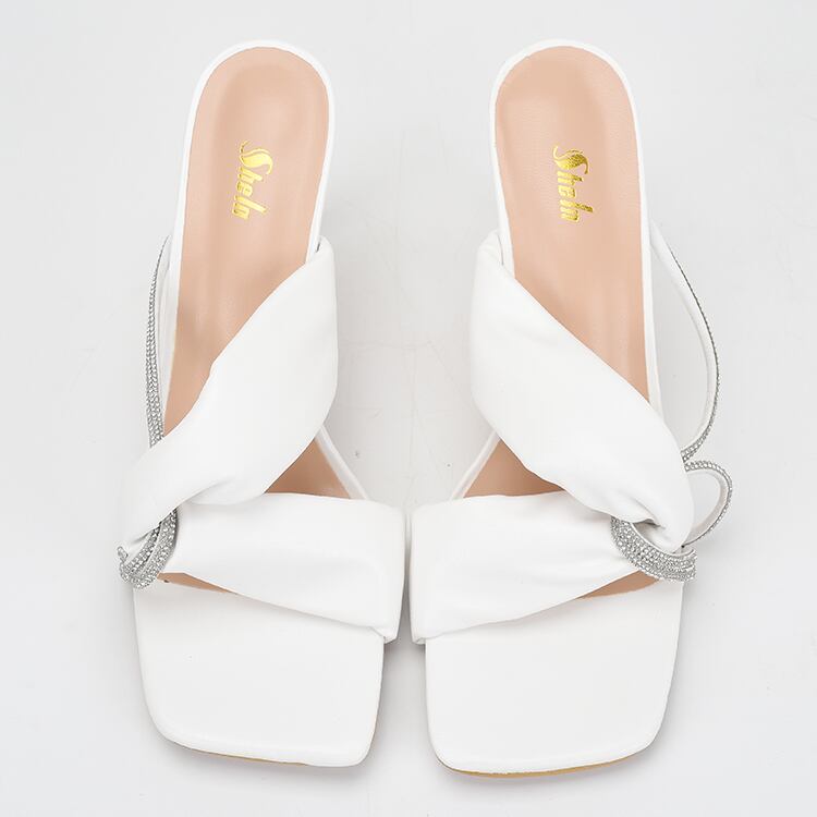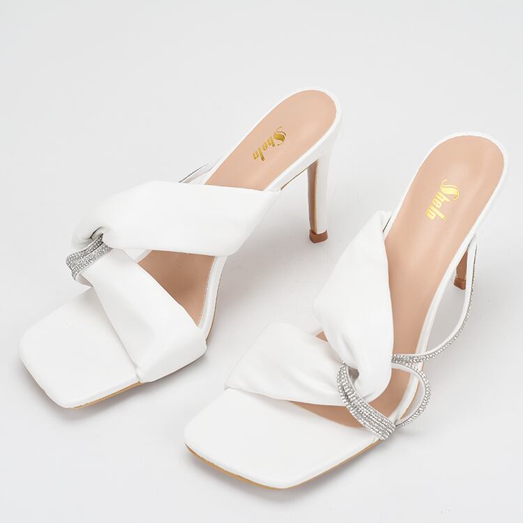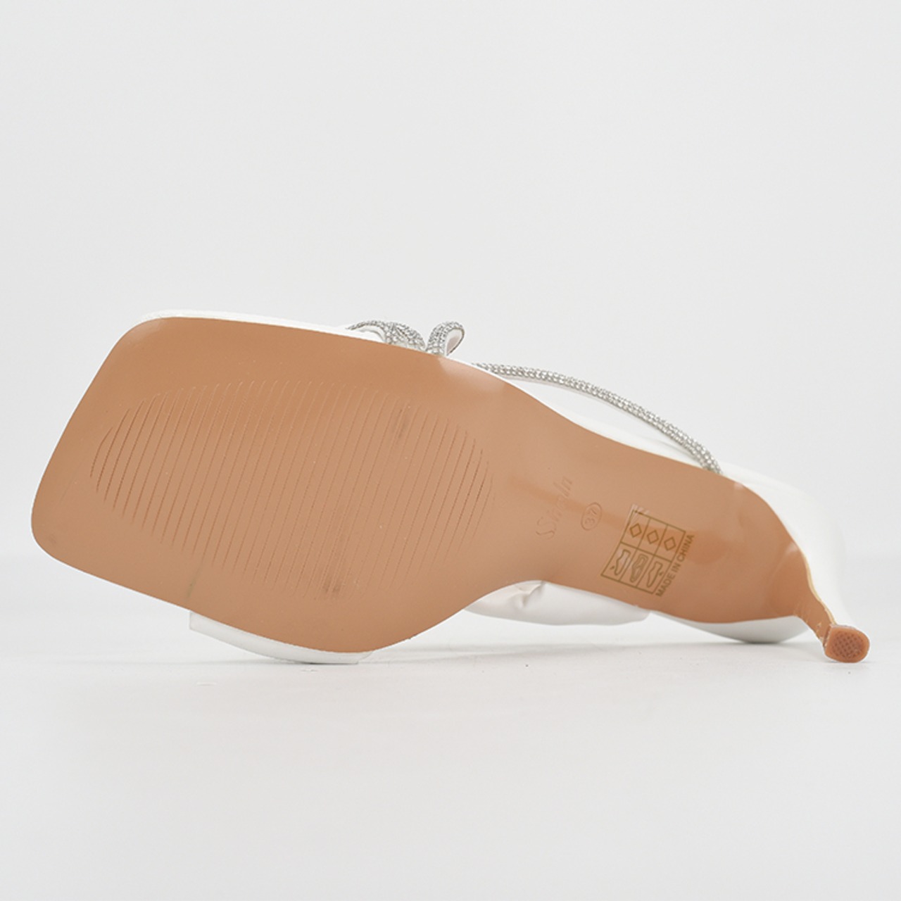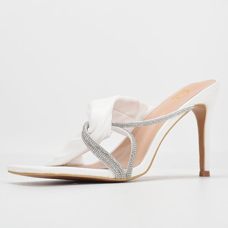 ラインストーン薄手ドレス ホワイトサンダルミュールレディース ハイヒール 靴 シューズ 大きめサイズ スクウェア 4/12 春夏 SS サンダル mi6284329290427